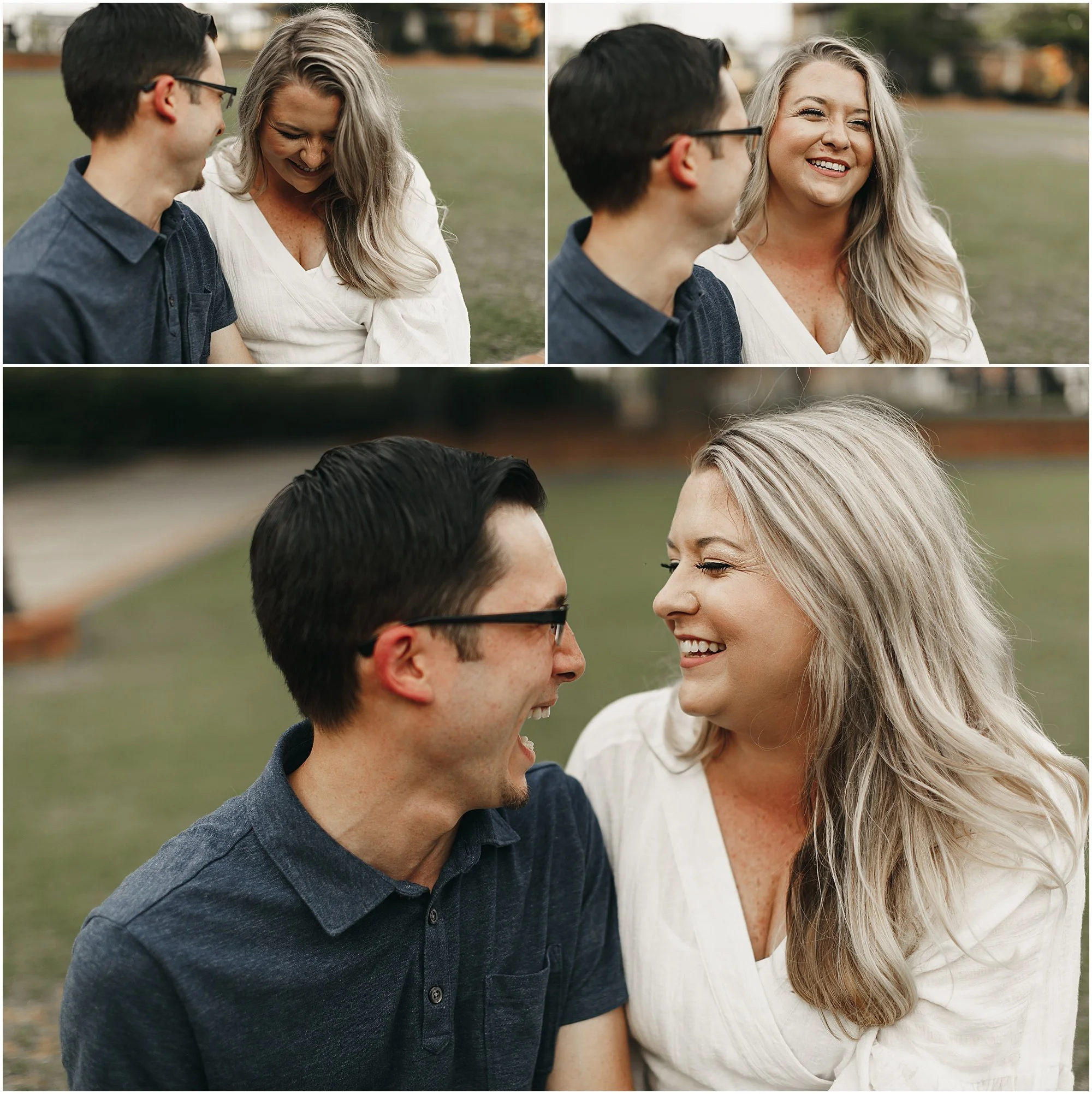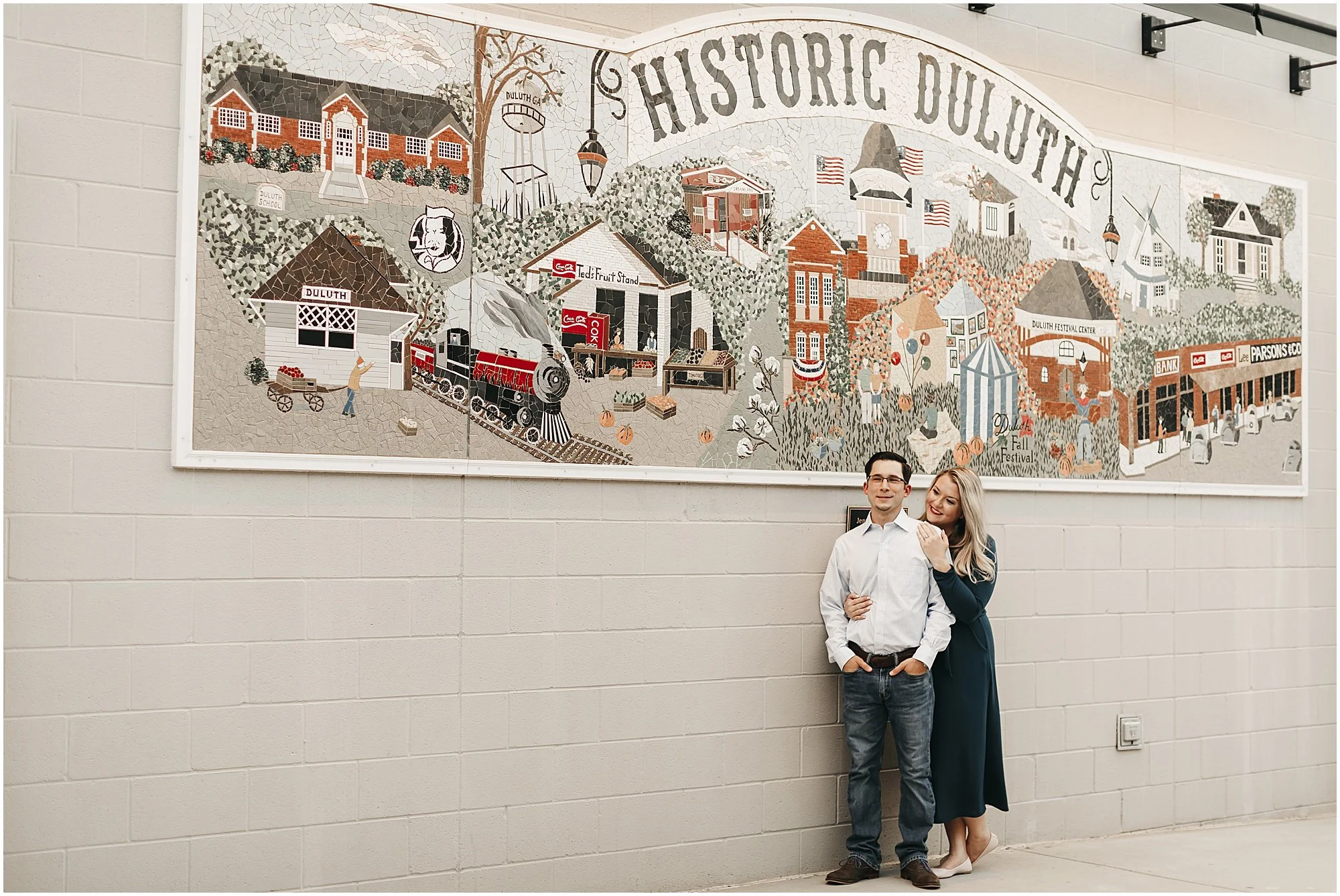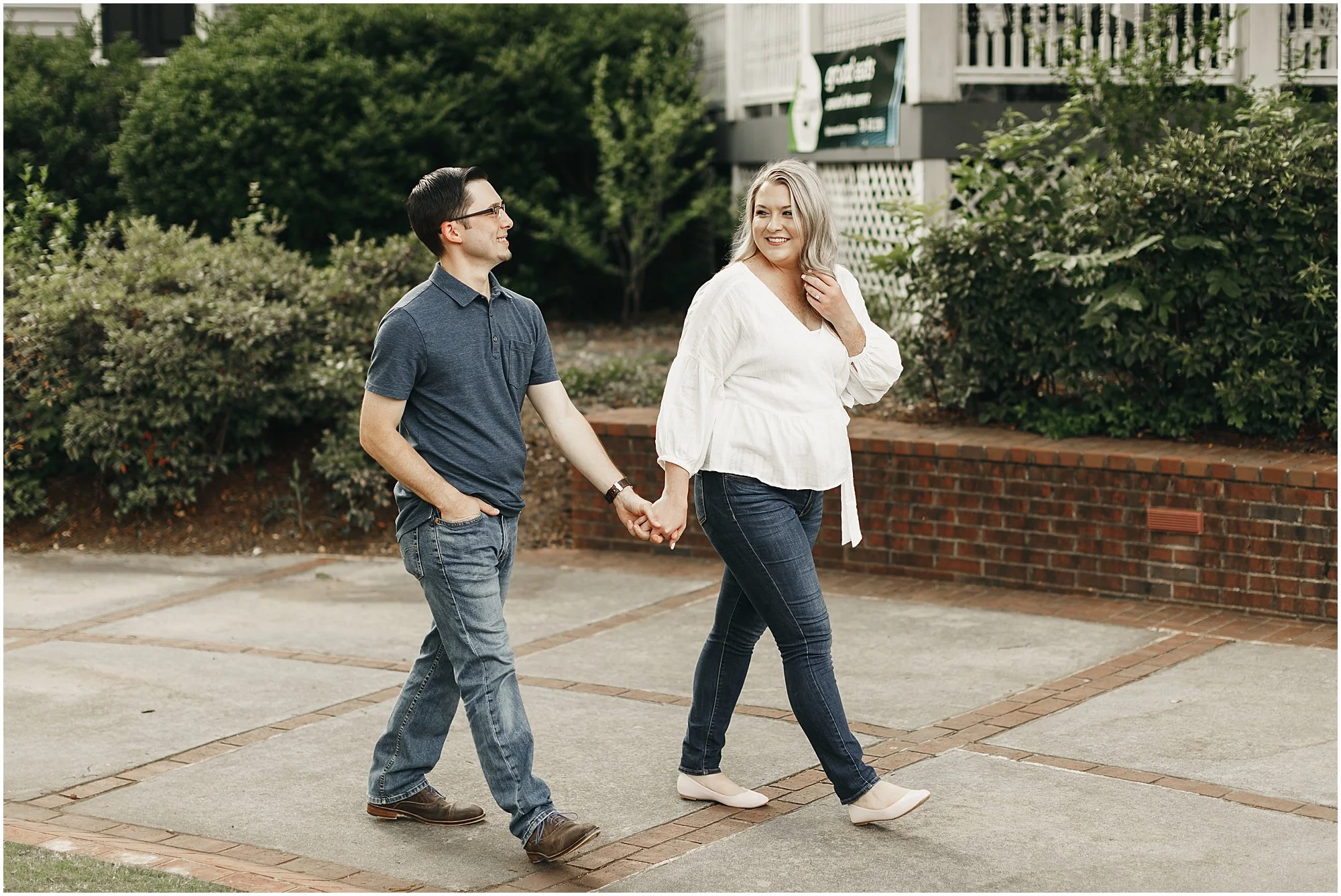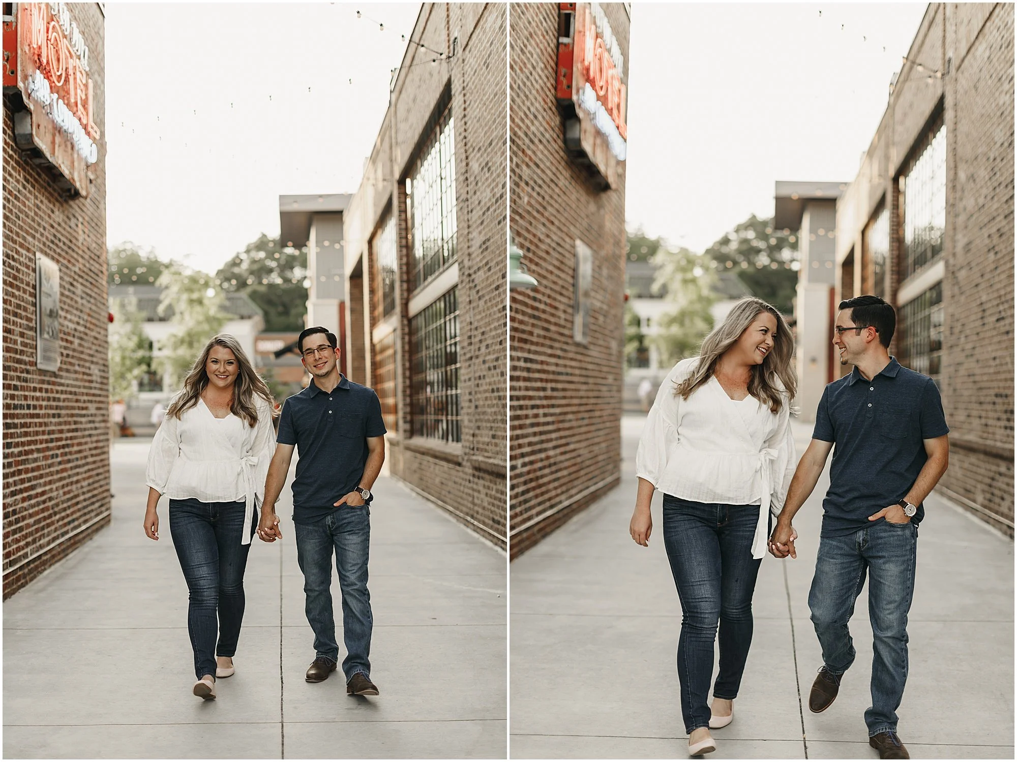 Lindley + Drew are the coolest couple I’ve photographed in a long time! They are confident, they know exactly what they want, and who they are and they display that beautifully in their personality. We met up at a local brewery in Downtown Duluth had a beer and got to know each other a bit before our session. These two have been together since High School, which totally spoke with since I’ve been with my husband since High School as well, but they did have us beat by a couple of years haha. We also talked about their wedding which is taking place at Lake Lanier Islands over looking the lake this November — ahhh I’m super excited to be capturing their wedding this fall! Also, you will notice the cutest fluff ball – Graham, their dog. who I hope will be a part of the wedding later this year!! <3