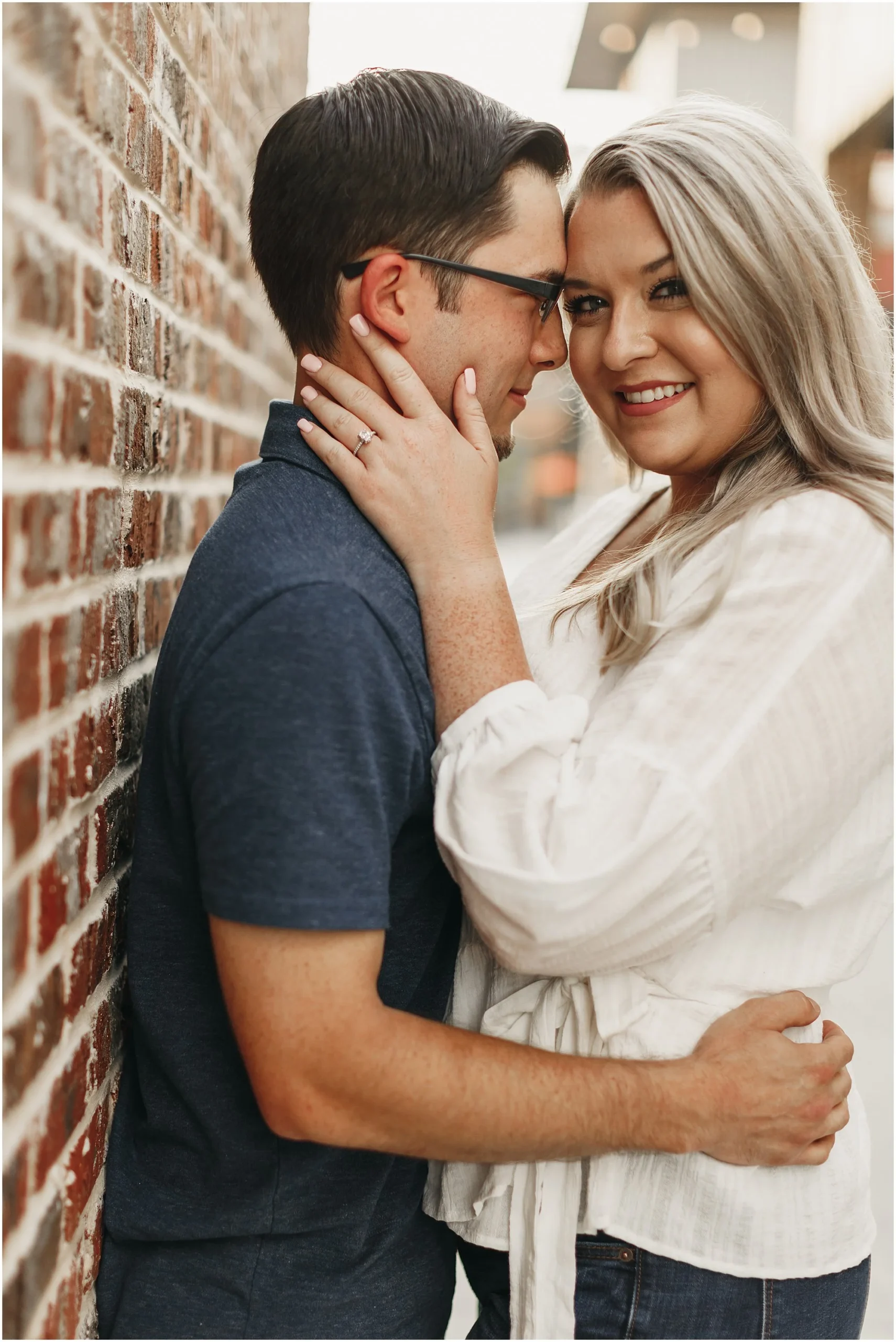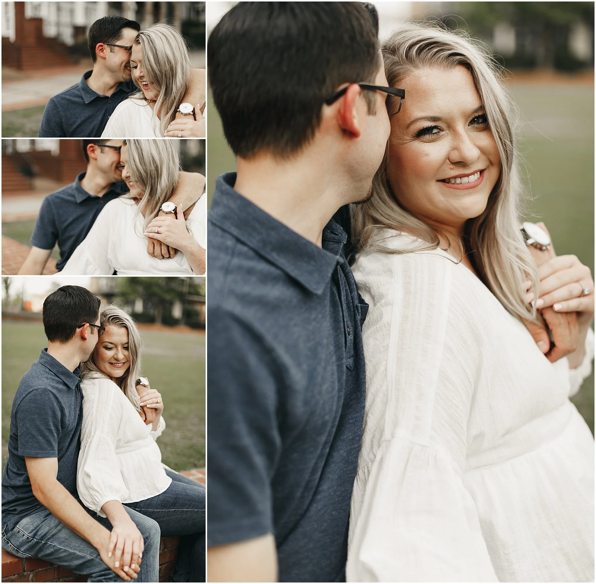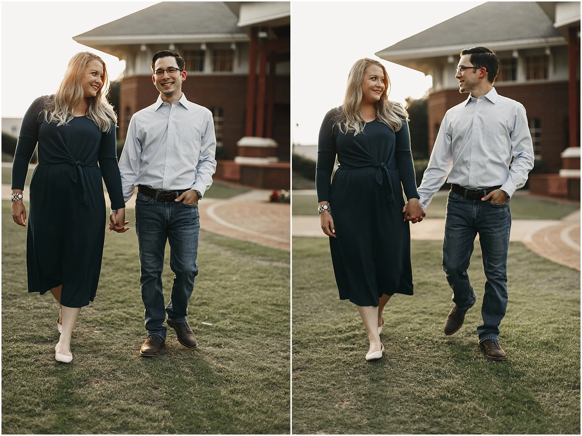 Lindley + Drew are the coolest couple I’ve photographed in a long time! They are confident, they know exactly what they want, and who they are and they display that beautifully in their personality. We met up at a local brewery in Downtown Duluth had a beer and got to know each other a bit before our session. These two have been together since High School, which totally spoke with since I’ve been with my husband since High School as well, but they did have us beat by a couple of years haha. We also talked about their wedding which is taking place at Lake Lanier Islands over looking the lake this November — ahhh I’m super excited to be capturing their wedding this fall! Also, you will notice the cutest fluff ball – Graham, their dog. who I hope will be a part of the wedding later this year!! <3