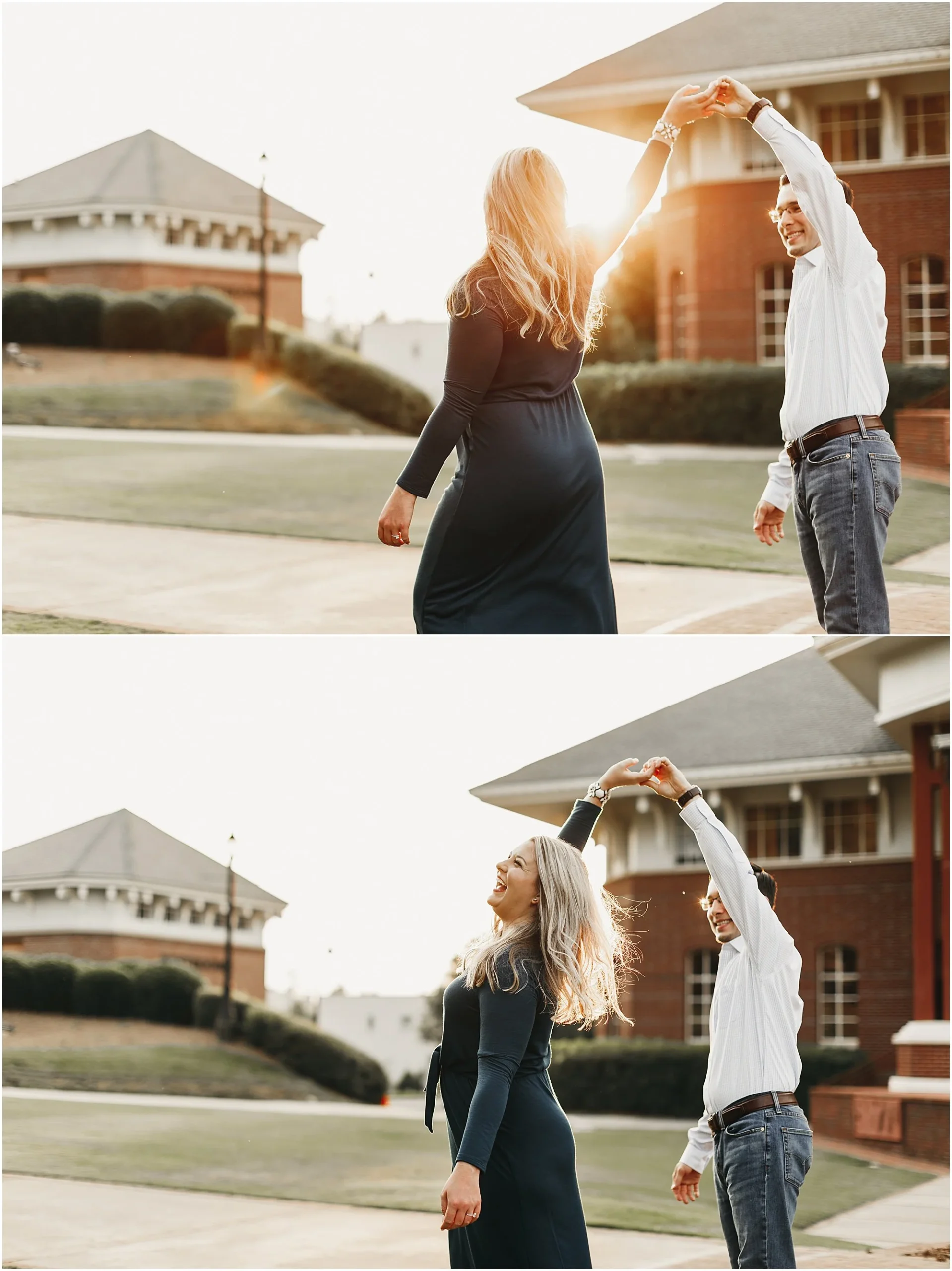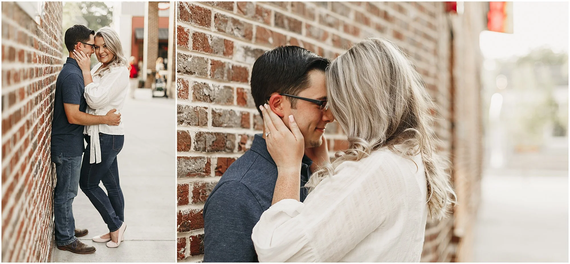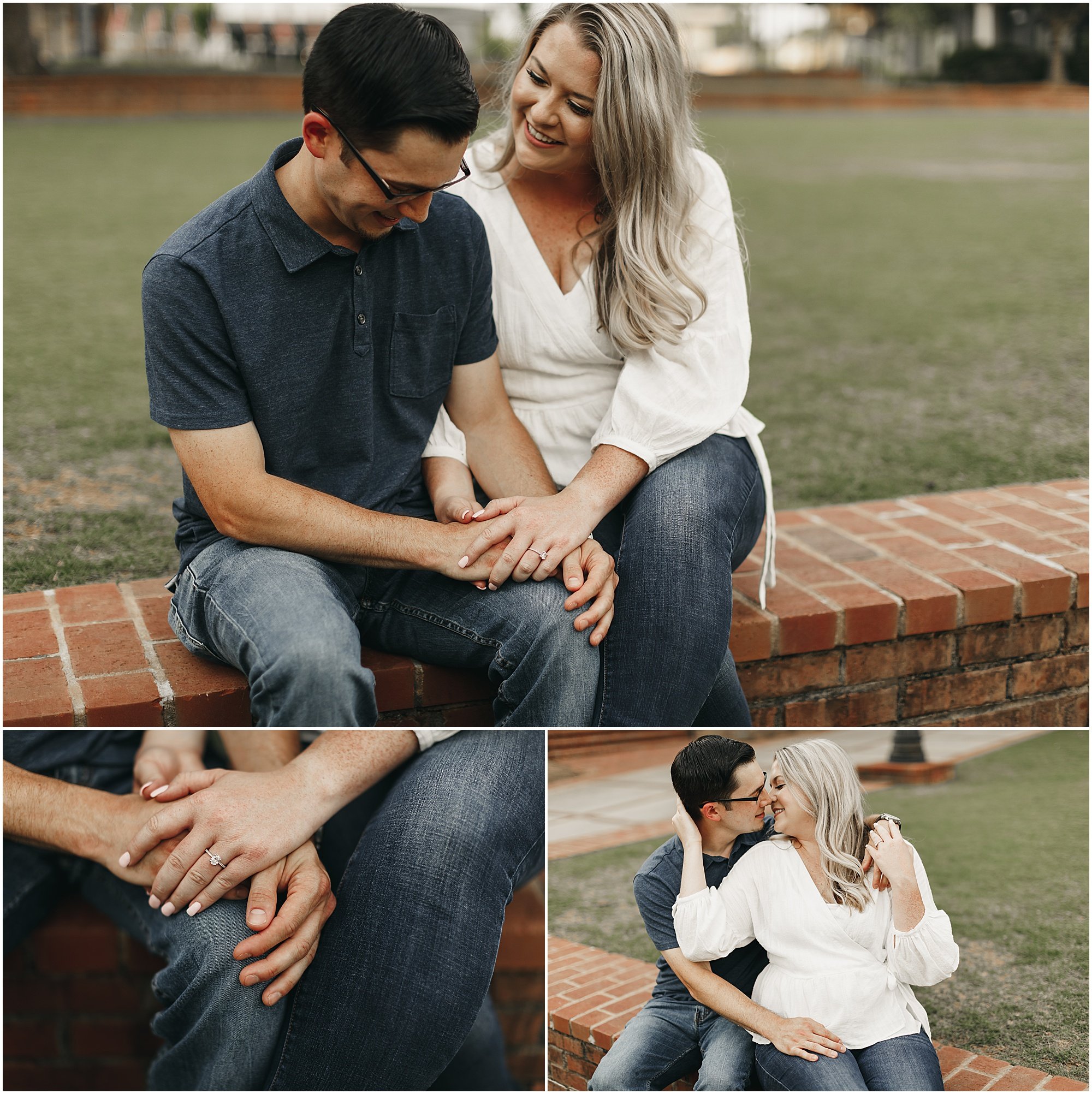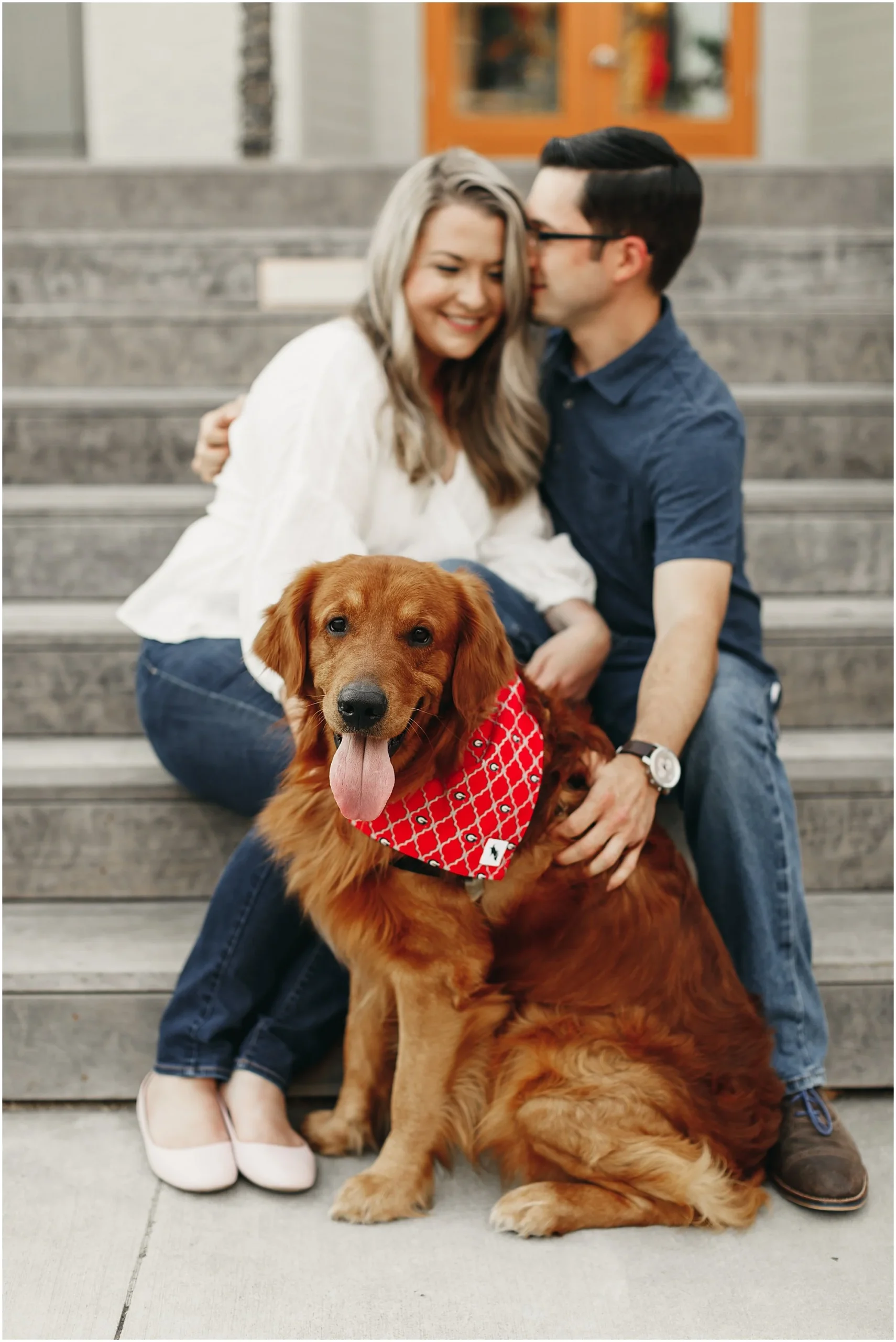 Lindley + Drew are the coolest couple I’ve photographed in a long time! They are confident, they know exactly what they want, and who they are and they display that beautifully in their personality. We met up at a local brewery in Downtown Duluth had a beer and got to know each other a bit before our session. These two have been together since High School, which totally spoke with since I’ve been with my husband since High School as well, but they did have us beat by a couple of years haha. We also talked about their wedding which is taking place at Lake Lanier Islands over looking the lake this November — ahhh I’m super excited to be capturing their wedding this fall! Also, you will notice the cutest fluff ball – Graham, their dog. who I hope will be a part of the wedding later this year!! <3