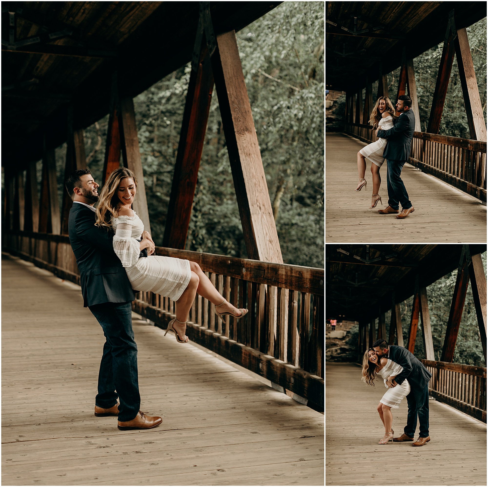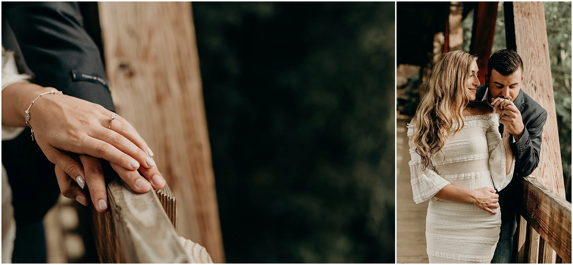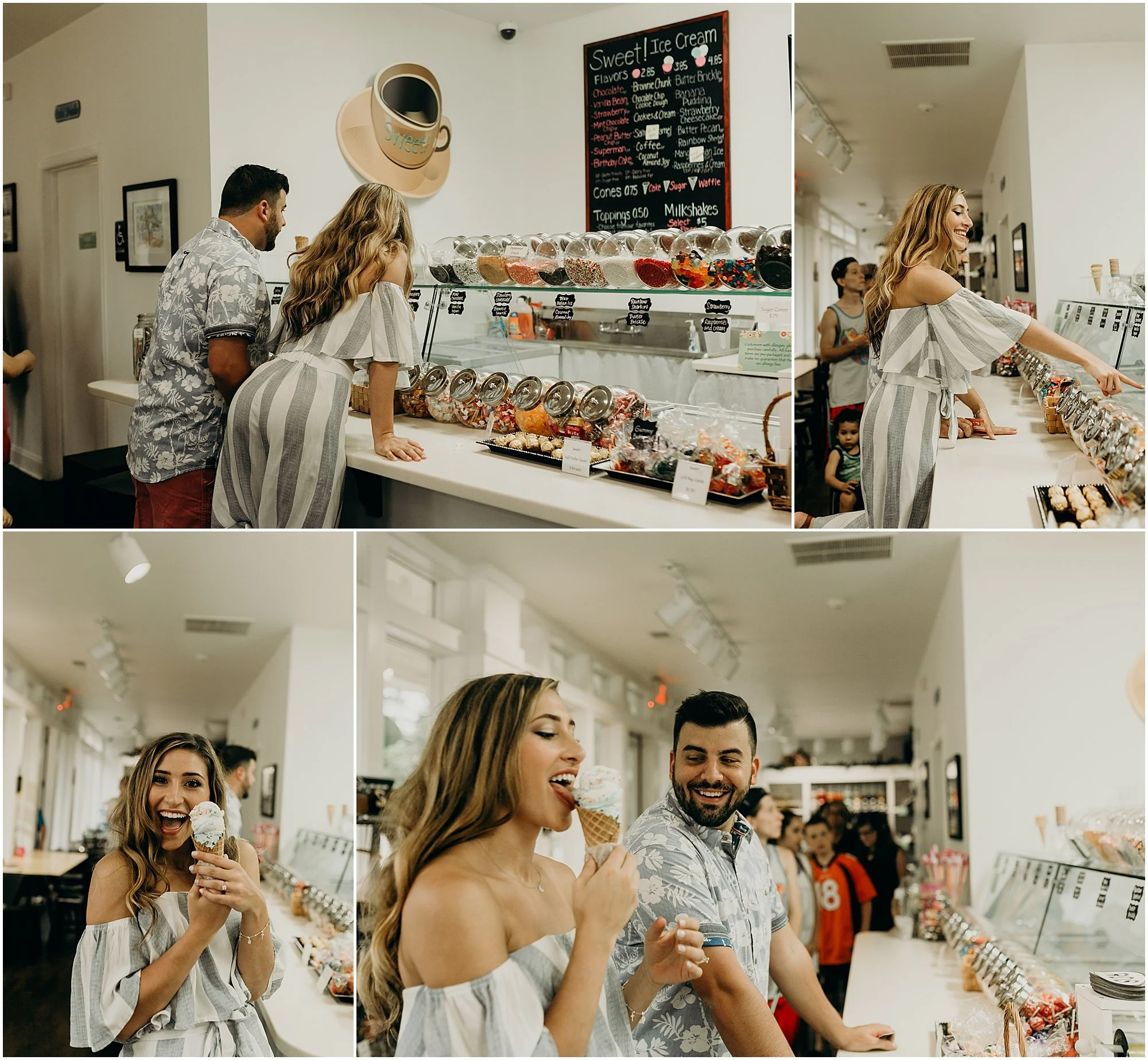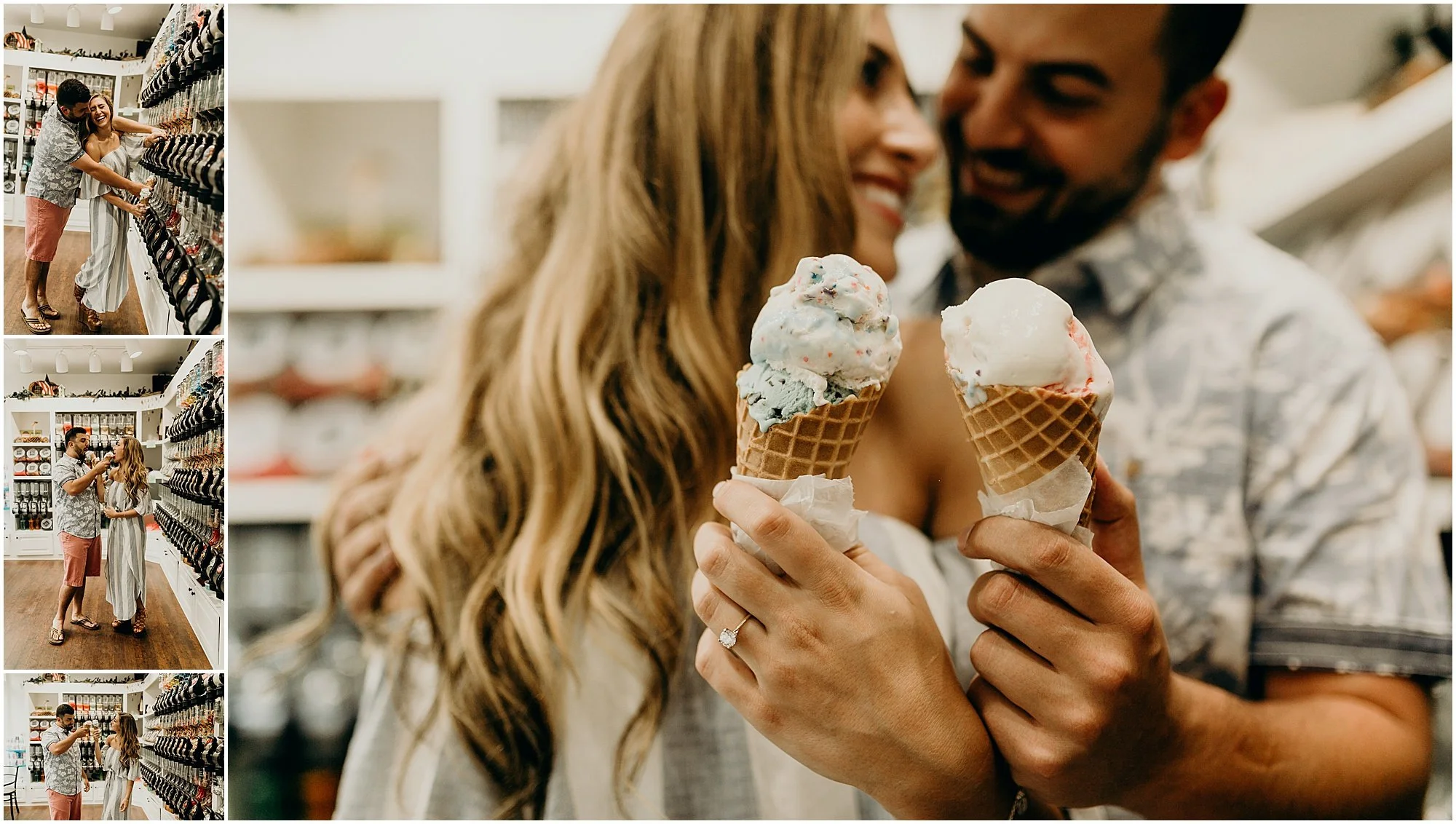 This engagement session is in the books as one of my favorites. It was shot in 2017, but I wanted to repost it, because it’s simply adorable, and both Alex & Curtis were pretty confident during their shoot, they were easy to direct in posing, and they were so much fun to capture! Alex had done her research and she pretty much knew what she wanted. She chose Downtown Roswell because that was a place that they usually hung out and went out for dates at. We did hit Old Roswell Mill first, which was nice, they had their formal outfits on first and we got some great shots there, but there were so many people there that we quickly moved on to Downtown Roswell. Alex knew about this ice cream shop [ which I think is closed now 🙁 ] but we got ice cream and went outside, where I spotted that mint green truck with the sun setting behind it (perfect timing – I thought) and immediately went for it! Eventually we ended up on one of the home/shops porch for our final photos across the street. Their photo with the ice cream in Downtown Roswell was one of the highest reposted photos i’ve ever taken. It got published on Shootproof, TwoBrighLights, and many other wedding publications. Even a year later I would be receiving emails from random publications that ran across their photo with the ice cream in front of the green truck wanting to repost and use it on their site. The point I’d like to make is that the reason why their engagement session was so amazing, fun and in the end reposted by many wedding publications was because they took the time before their engagement session to plan something fun! They planned and coordinated their outfit, they researched fun ideas on Pinterest, they ran their ideas by me (their photographer) and most importantly they allowed themselves to be loving and goofy in front of the camera for the world to see!