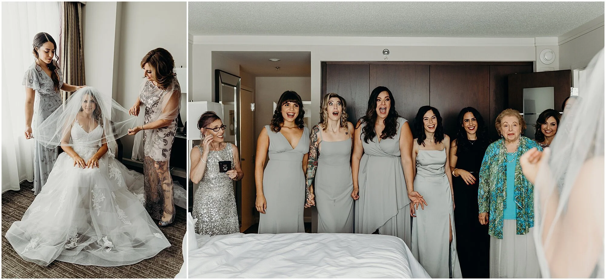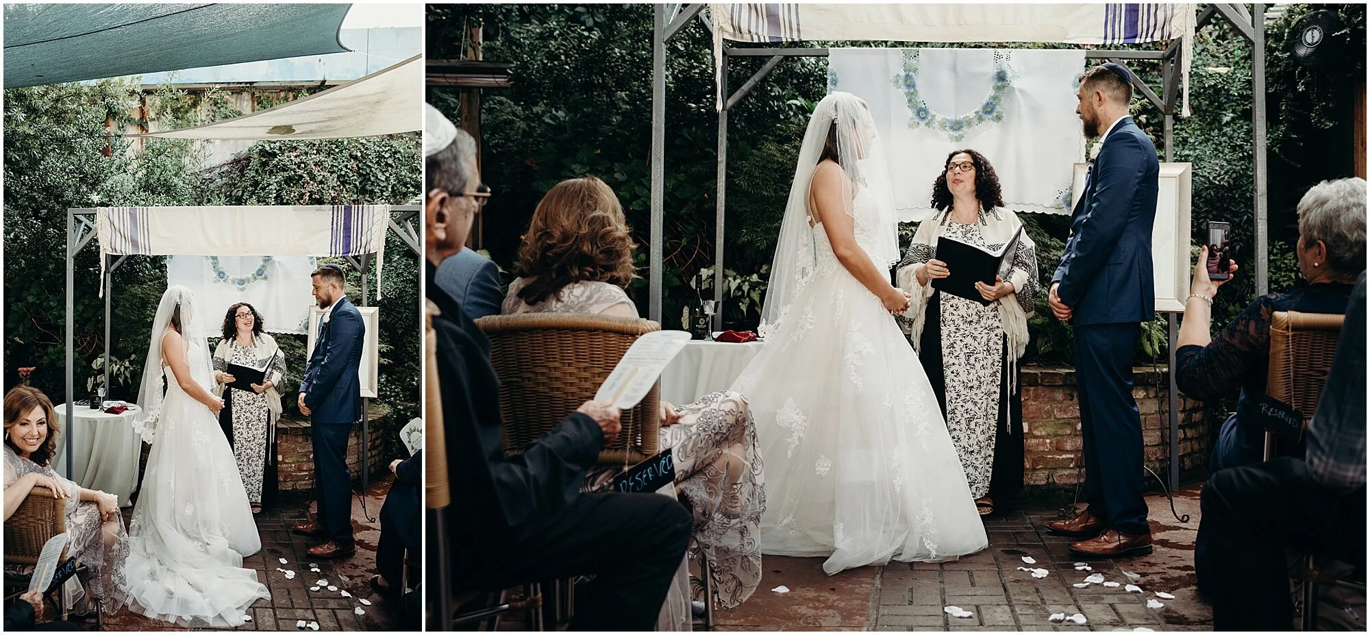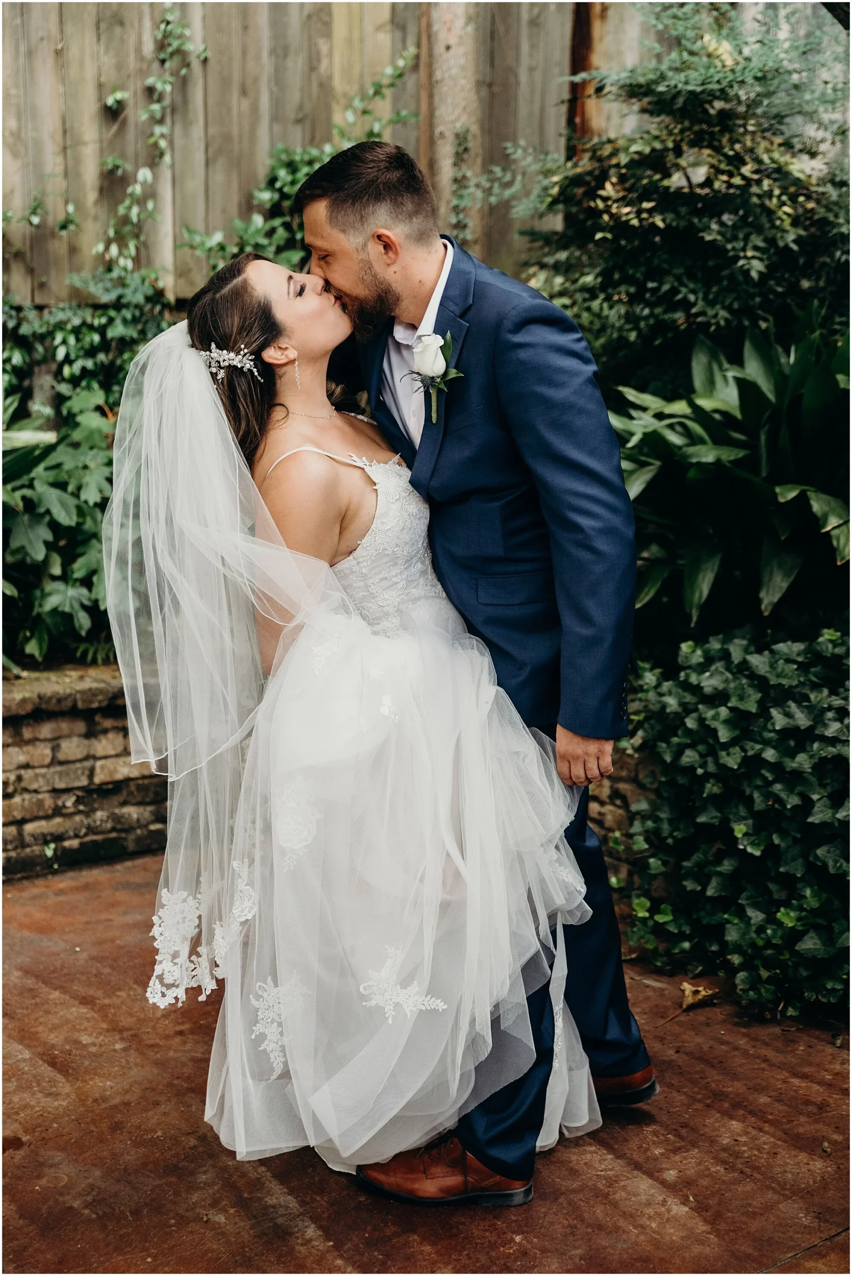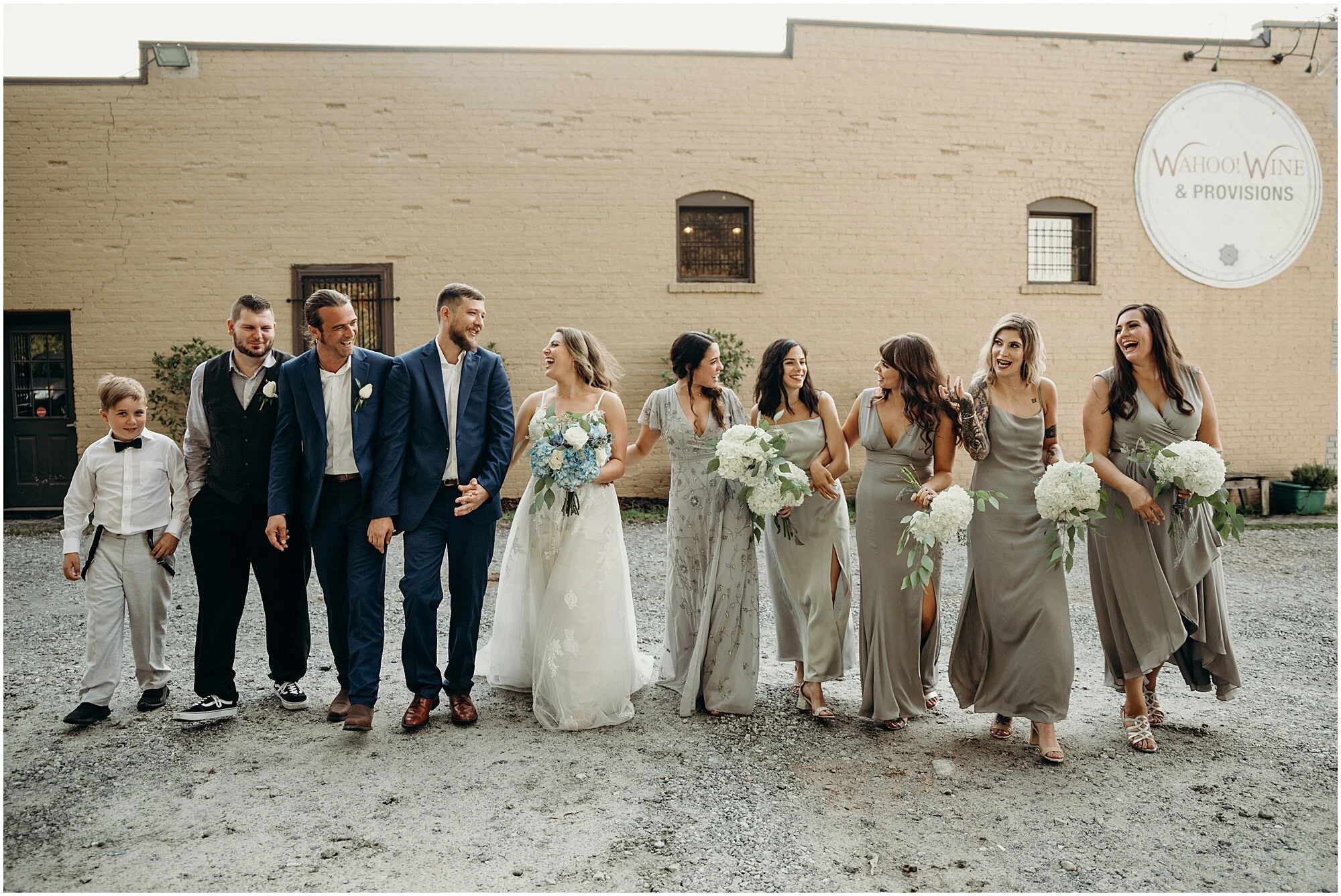 Everyone had so much love for the both of them and you could feel it in the room! Alexa is such a loving person and it was definitely an emotional day where she received love and loved on all her family and friends! We started the day off getting ready at the Westin hotel downtown with her bridesmaids, then we drove to the wedding venue (Wahoo Grill) for portraits. The First Look took place right at the entrance of Wahoo Grill, which is filled with plants and looks like you are walking through a garden. It was so enchanting and the perfect place for these two to have one-on-one time! Then we had portraits with all the bridal party by the greenery and outside of the venue as the bride wanted a very simple look in the background. Since this is an urban venue, we decided to take the bride and groom on a walk around the block and get some urban portraits as well. Since the bride and groom chose to do a first look, Most of the photos were done before the ceremony.