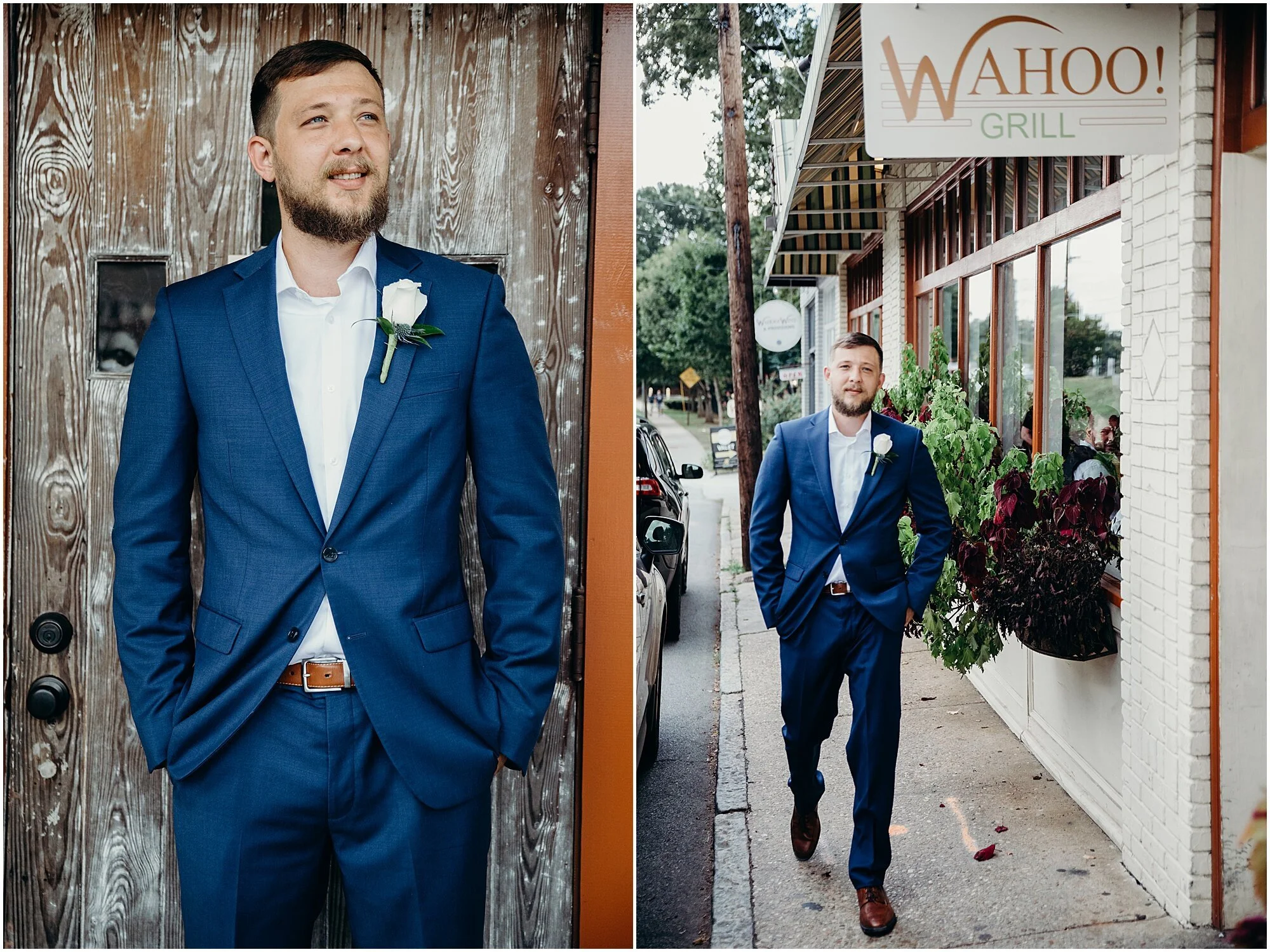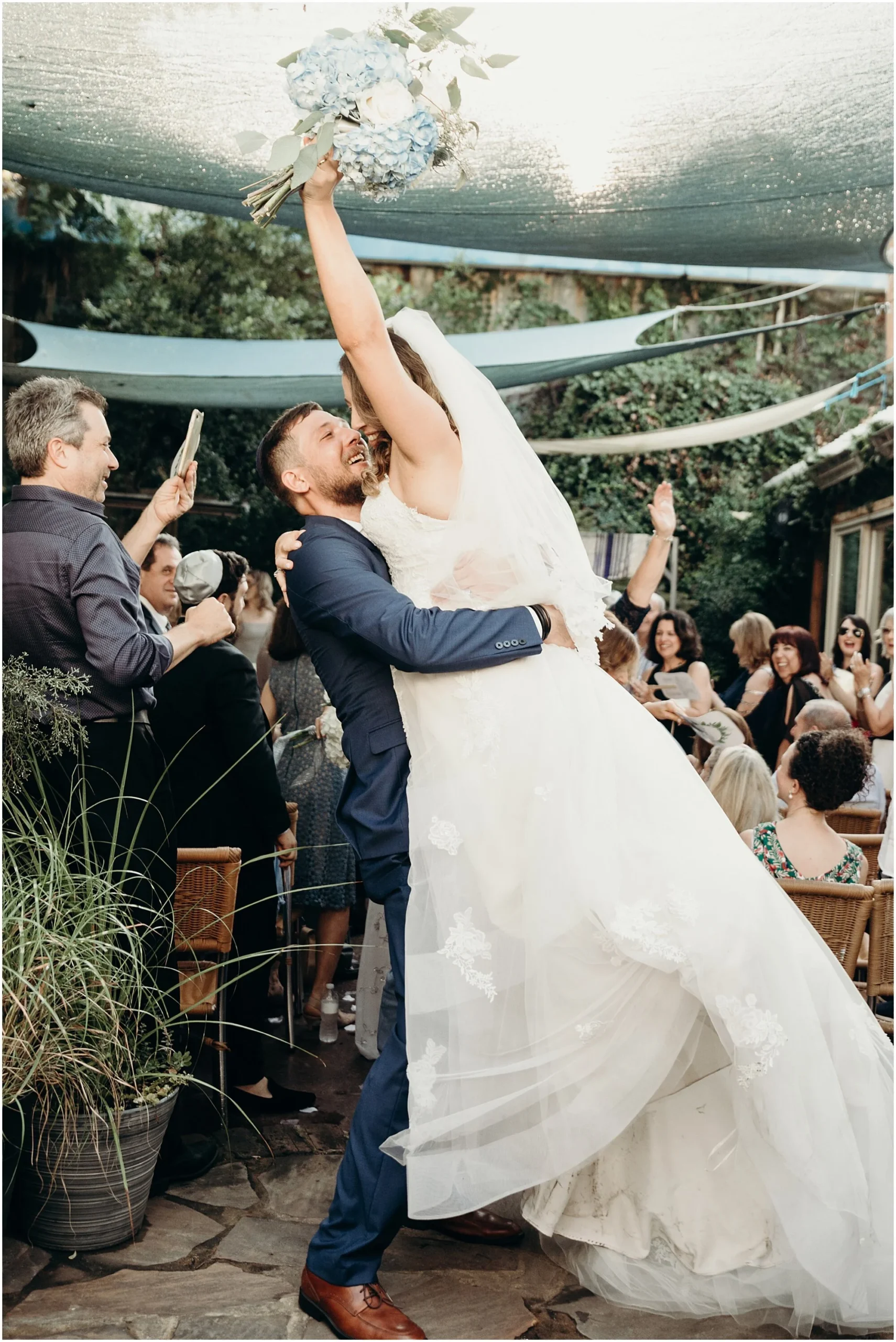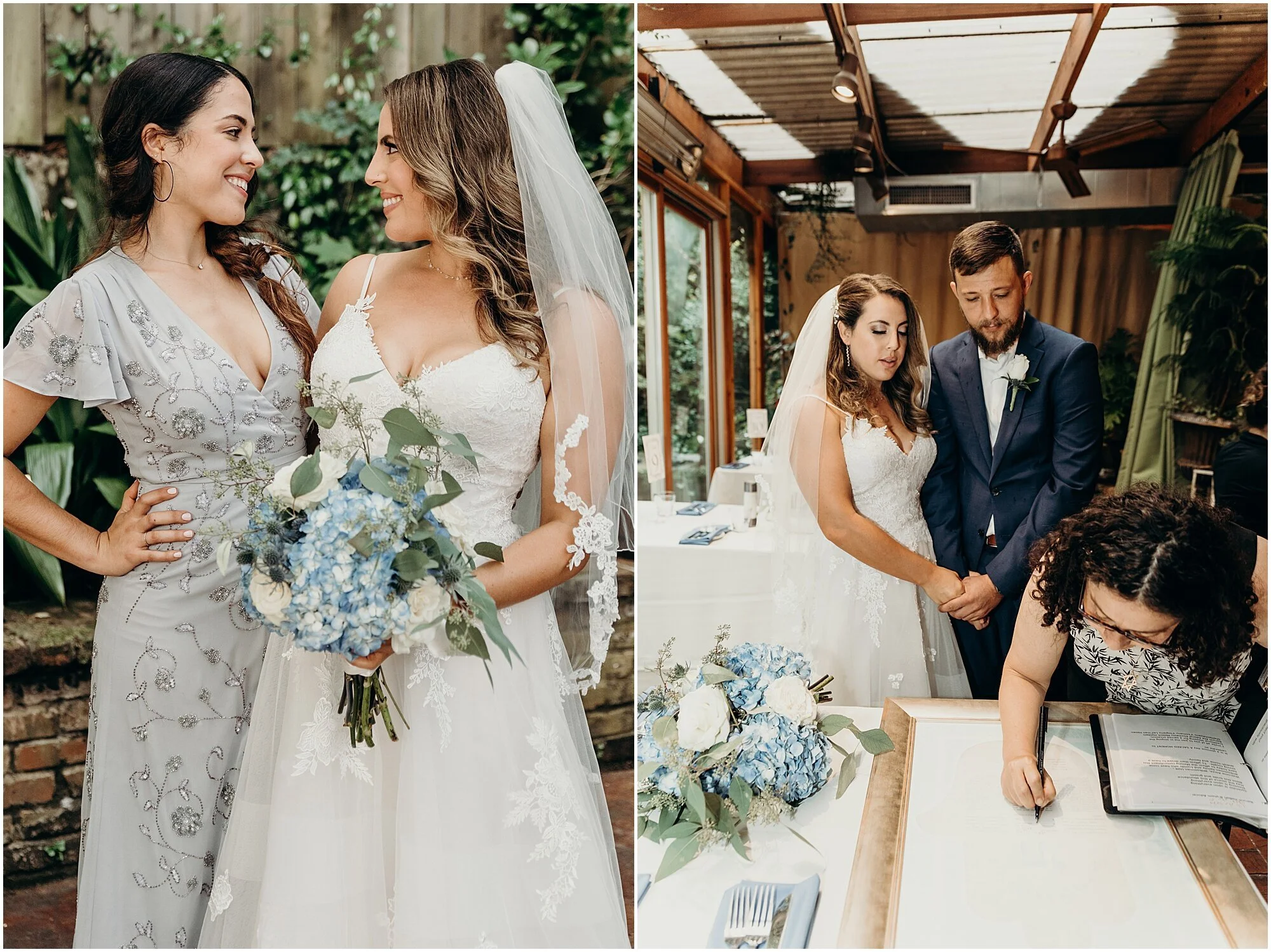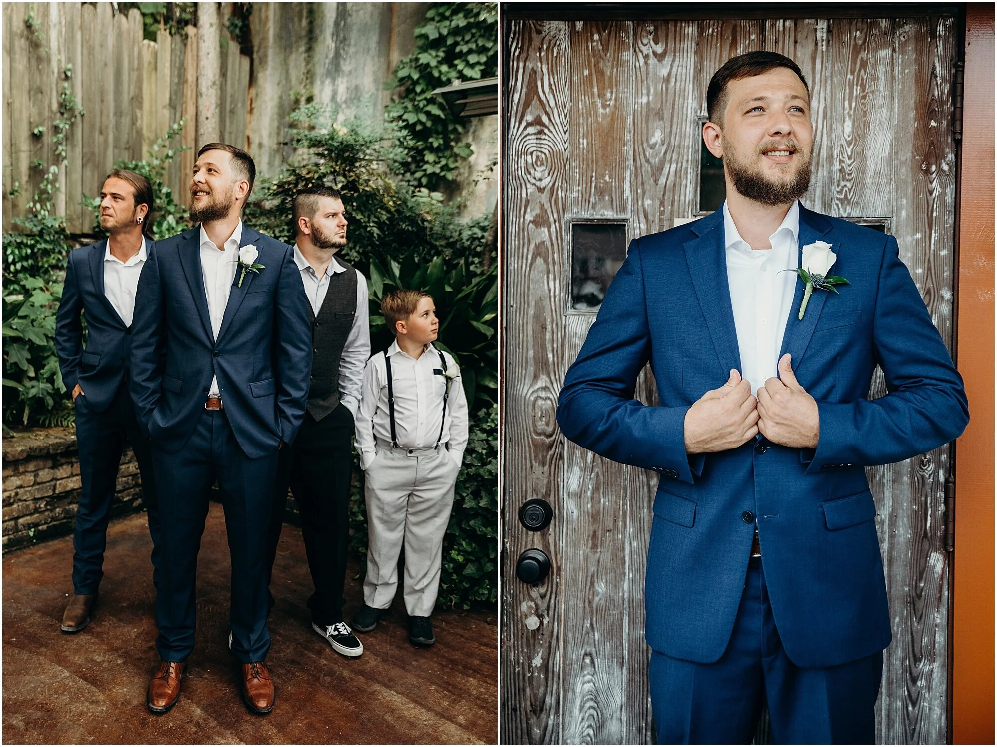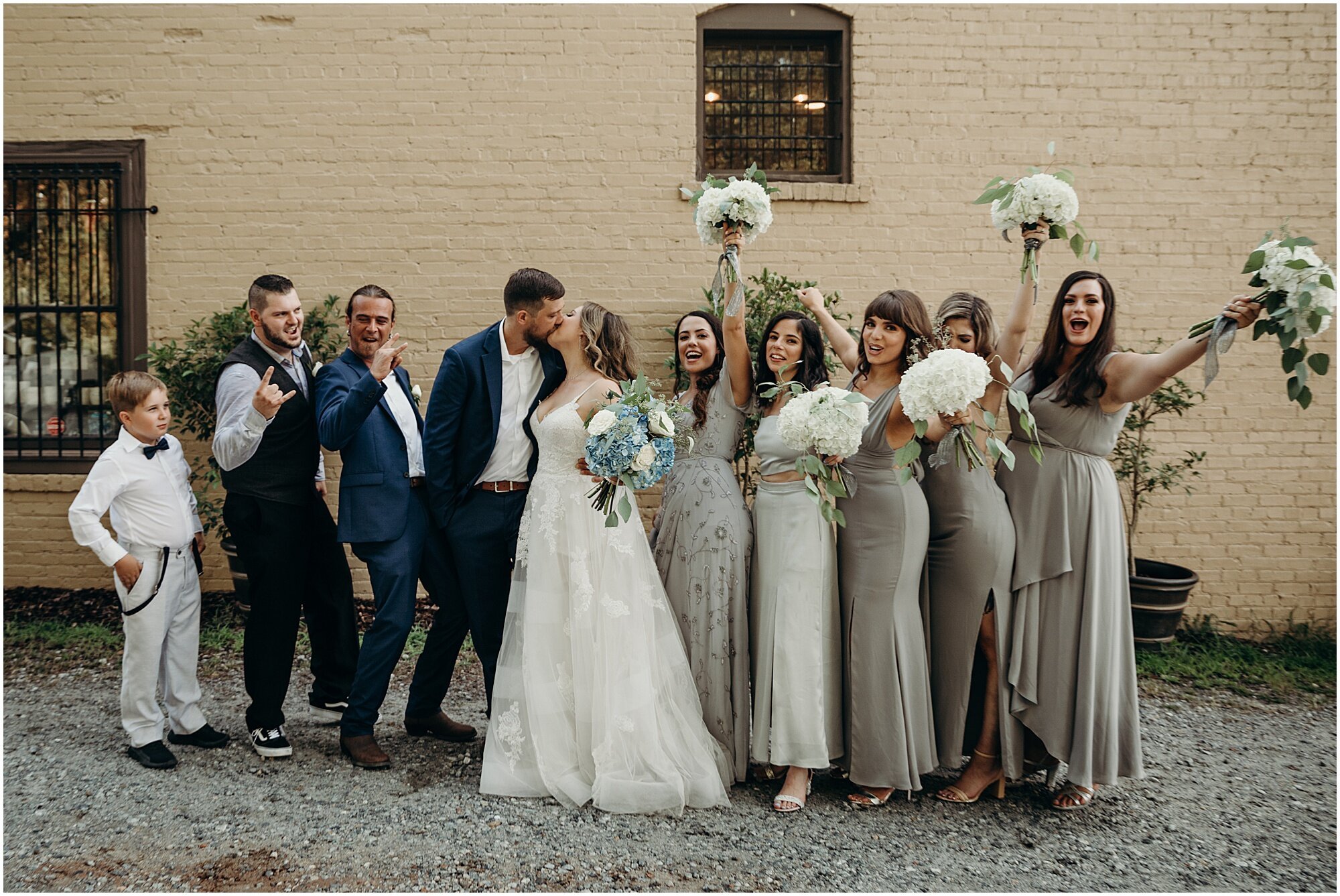 Everyone had so much love for the both of them and you could feel it in the room! Alexa is such a loving person and it was definitely an emotional day where she received love and loved on all her family and friends! We started the day off getting ready at the Westin hotel downtown with her bridesmaids, then we drove to the wedding venue (Wahoo Grill) for portraits. The First Look took place right at the entrance of Wahoo Grill, which is filled with plants and looks like you are walking through a garden. It was so enchanting and the perfect place for these two to have one-on-one time! Then we had portraits with all the bridal party by the greenery and outside of the venue as the bride wanted a very simple look in the background. Since this is an urban venue, we decided to take the bride and groom on a walk around the block and get some urban portraits as well. Since the bride and groom chose to do a first look, Most of the photos were done before the ceremony.