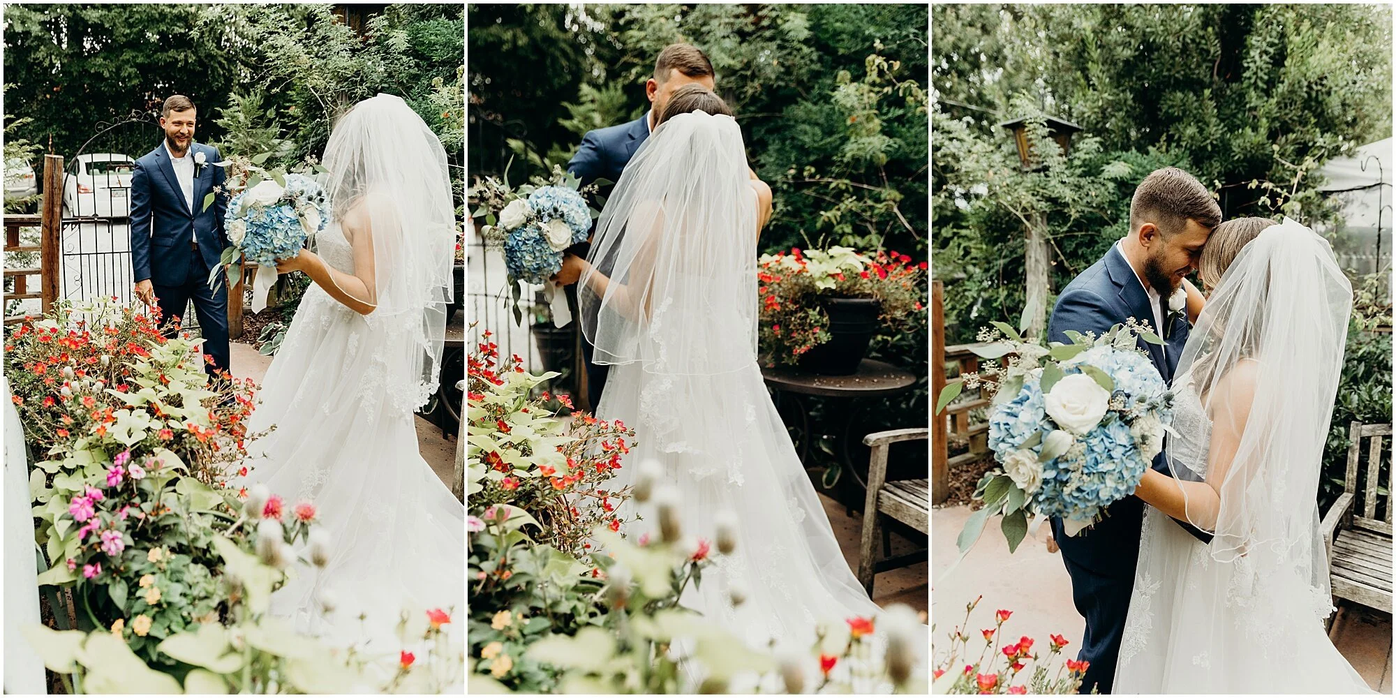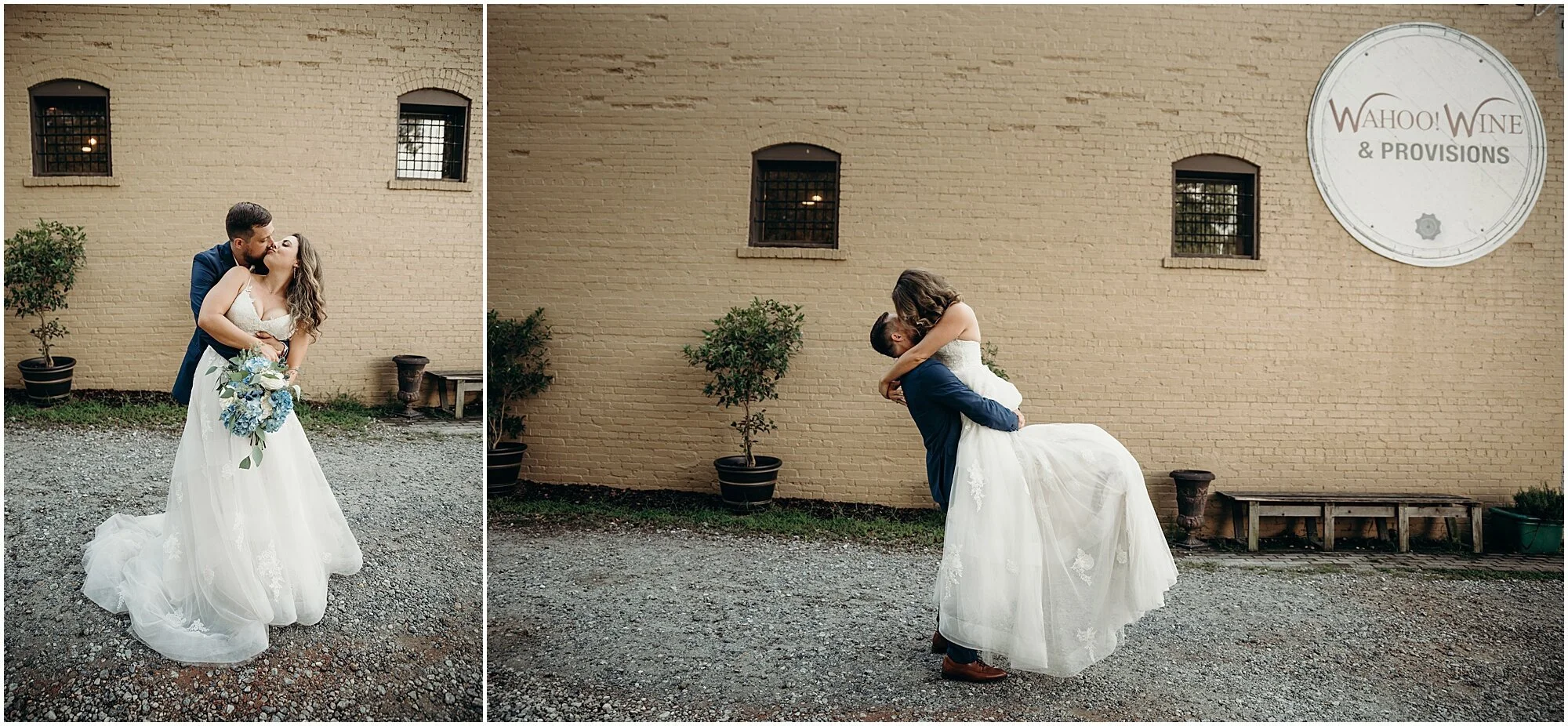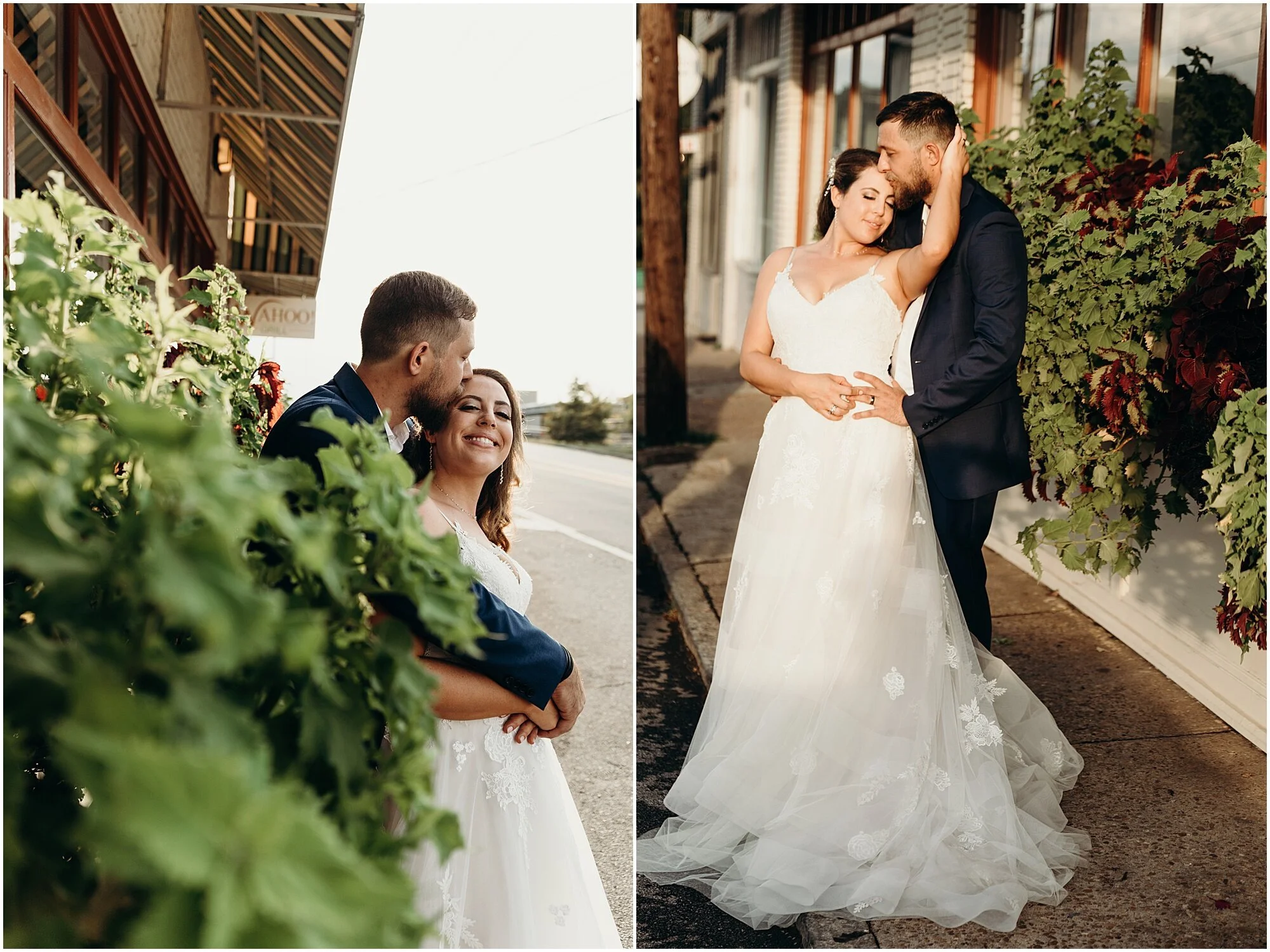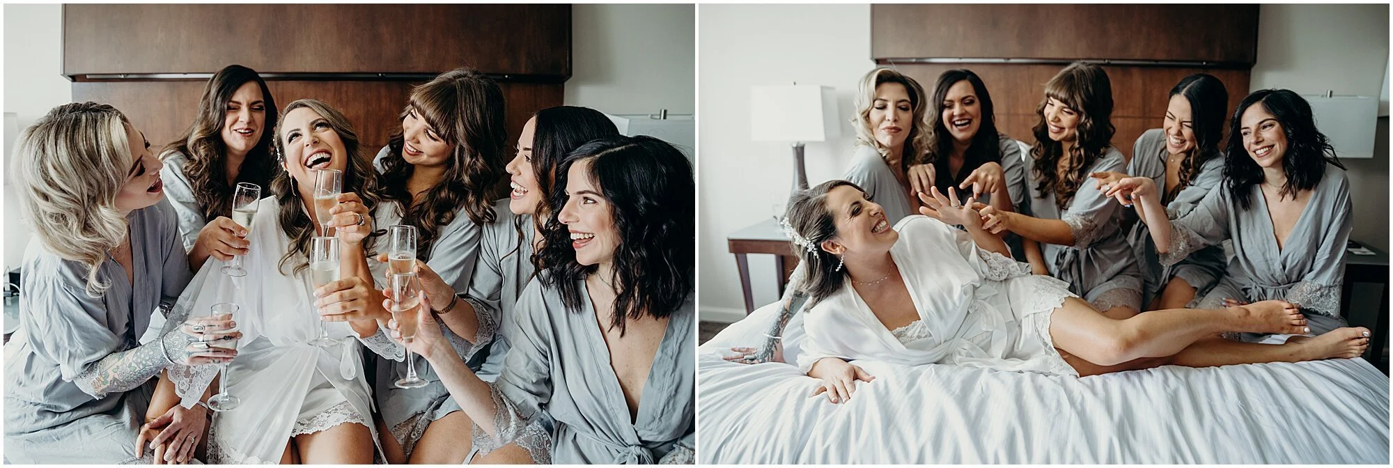 Everyone had so much love for the both of them and you could feel it in the room! Alexa is such a loving person and it was definitely an emotional day where she received love and loved on all her family and friends! We started the day off getting ready at the Westin hotel downtown with her bridesmaids, then we drove to the wedding venue (Wahoo Grill) for portraits. The First Look took place right at the entrance of Wahoo Grill, which is filled with plants and looks like you are walking through a garden. It was so enchanting and the perfect place for these two to have one-on-one time! Then we had portraits with all the bridal party by the greenery and outside of the venue as the bride wanted a very simple look in the background. Since this is an urban venue, we decided to take the bride and groom on a walk around the block and get some urban portraits as well. Since the bride and groom chose to do a first look, Most of the photos were done before the ceremony.