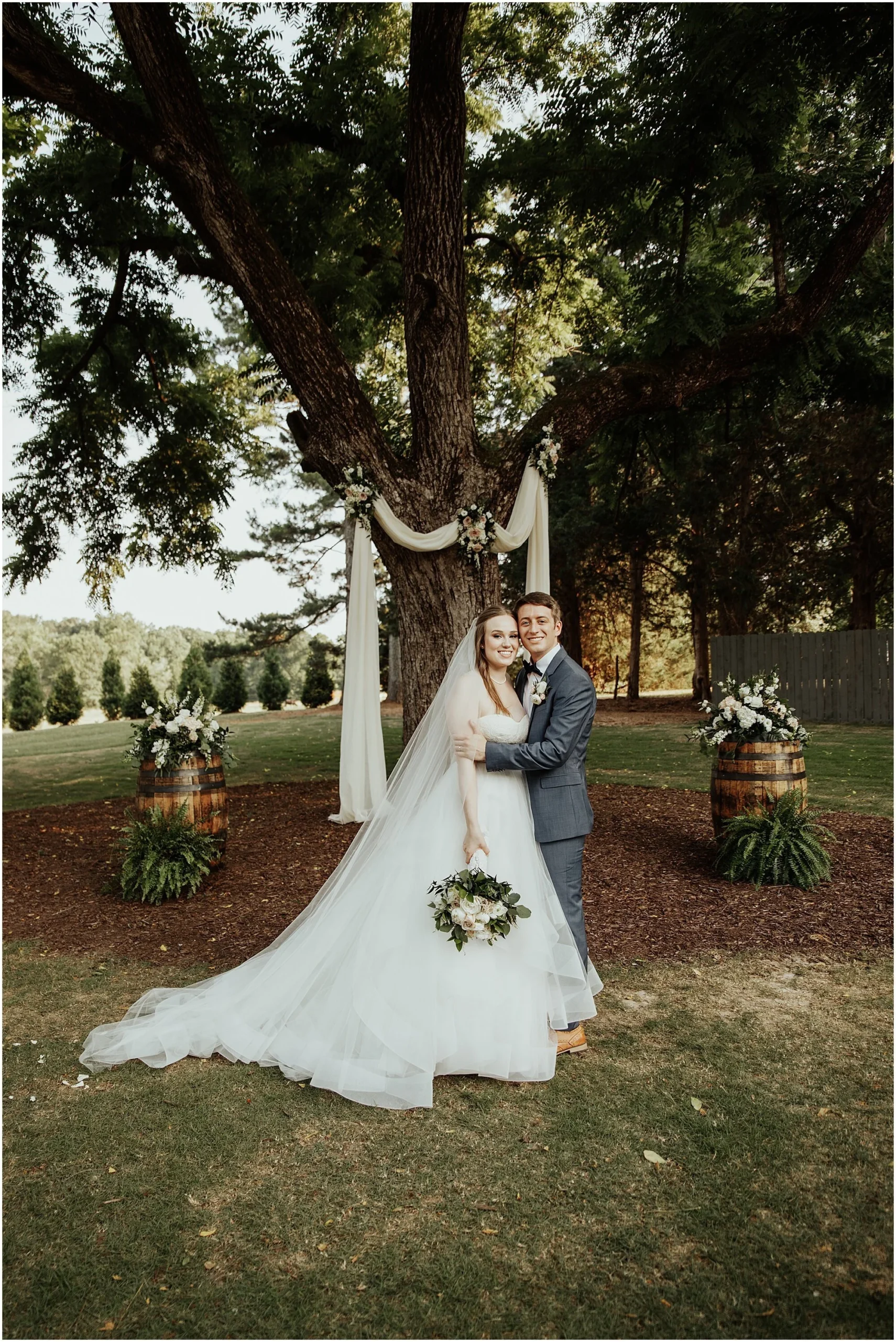 Hadley + Jacob’s love story started in their college years at Mississippi State. Hadley’s family is from Jefferson, GA so naturally she came back to have her wedding at her home town of Jefferson. They chose this beautiful outdoor venue that reminded them of relaxing days back in Mississippi with lots of nature around. They had their ceremony outdoors under a gorgeous summer sunset on June 01, 2019.