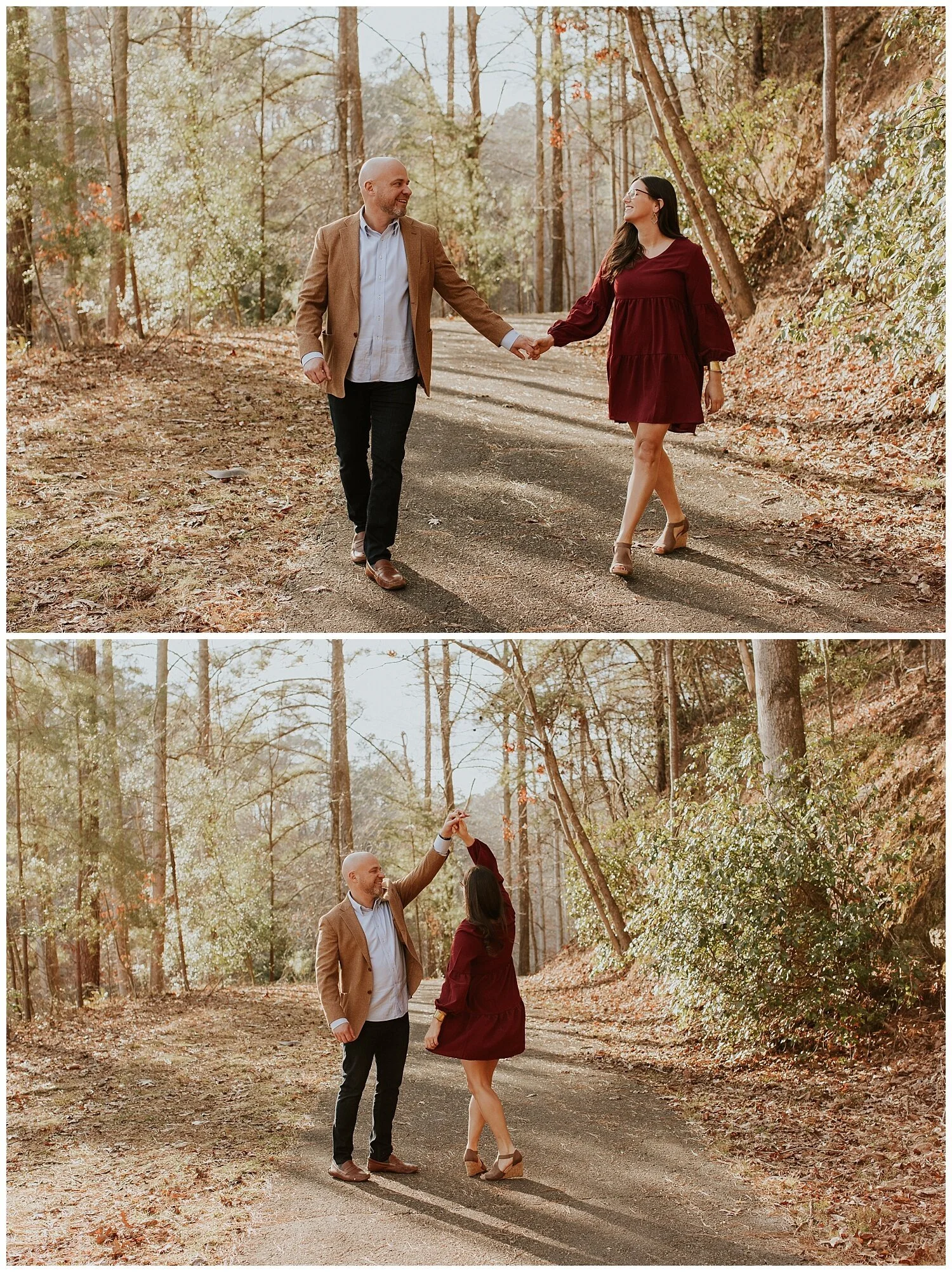 Molly and Adam had their engagement session at their lake house neighborhood up in the North Georgia Mountains. They had so many options for photos around the neighborhood like woodsy walking paths, the lake dock and the weather was gorgeous and totally helped. These two had such a great time walking around loving on each other and I was there to document this moment.