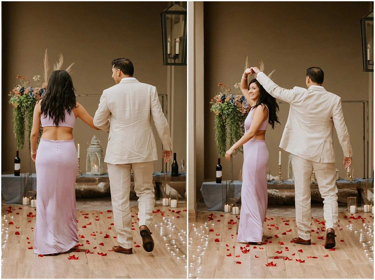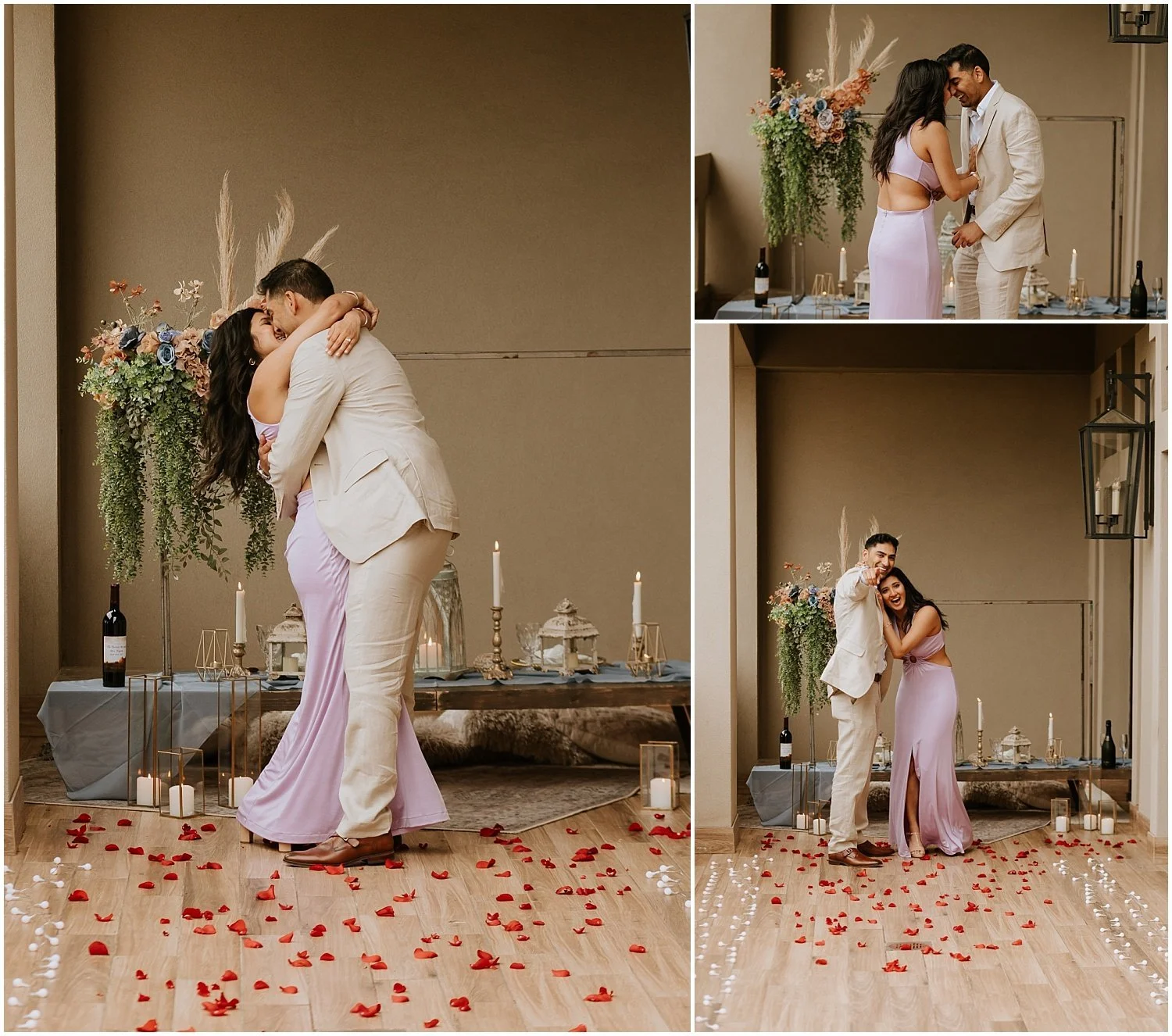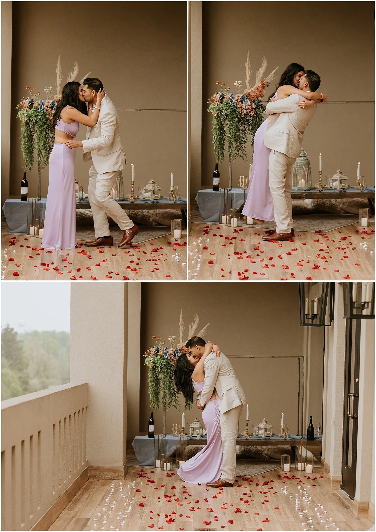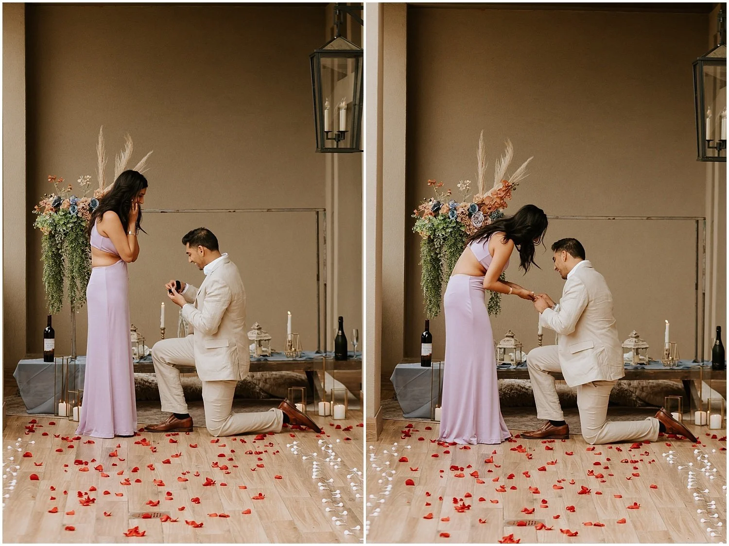Jai had been dating Raina for 4.5years and now was the time to proposal!! He planned a whole scavenger hunt activity for the whole day on her birthday that would take her all around Atlanta. the hunt would end at Chateau Elan Winery where he told her they were going to have dinner together. Little did she know that he had hired a venue coordinator, a photographer, and a videographer to capture this special moment. He also had a picnic style table decor set up on a private balcony at Chateau Elan Winery overlooking the winery. He had rose petals on the floor that would lead them to the picnic table where Jai got down on one knee and poured out his heart to Raina and asked her to marry him. Of course, she SAID YES!!! Who wouldn’t!!