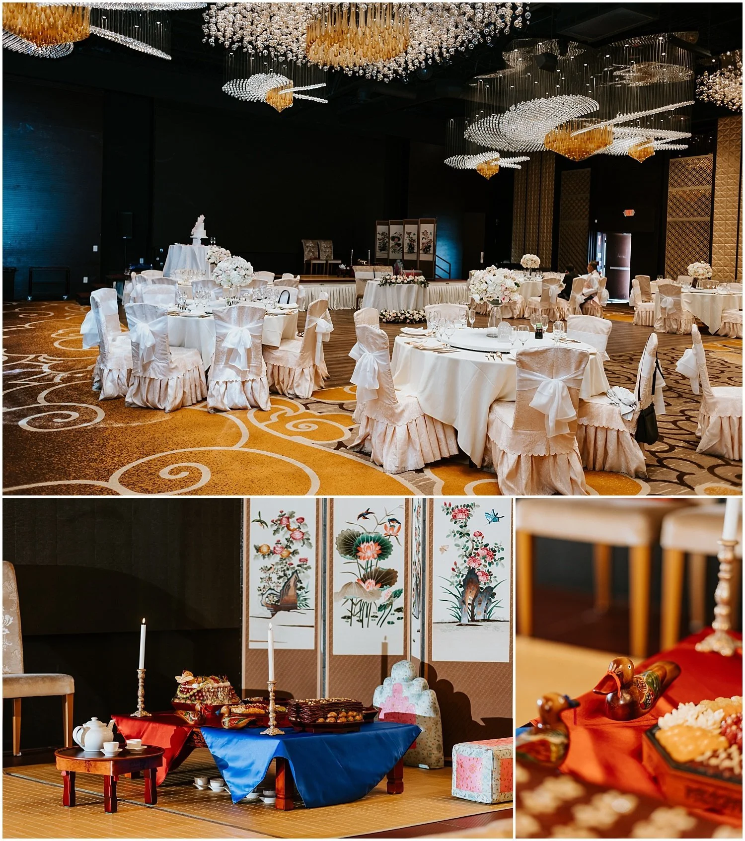 Their wedding took place at the PEACHTREE ROAD METHODIST CHURCH in Atlanta, GA. We loved capturing this wedding as we got to experience their wedding traditions and that was so unique. After the ceremony at the church in Midtown Atlanta, the couple rented out a Rolls Royce from Fortune Concierge to take them to the reception where they planned to celebrate with their close family and friends. The reception was held at ROYAL CHINA RESTAURANT where they served amazing food and offered a beautiful space for the couple to perform their wedding traditions and celebrate the rest of the night. We love the decor at Royal China Restaurant that you can see down below, everything was so delicate and carefully thought out thanks to Yanny and Tim’s awesome coordinator Kim from The Event ATL. The bride & groom performed their Korean Tea Ceremony, Pyebaek with the help from Atlanta Hanbok which is also where they got their traditional Korean clothes. It was a great opportunity for our team to capture every moment of this celebration and to experience these traditions that we don’t normally see on American traditional weddings. We love adding diversity to our portfolio and we are proud to share this one of Yanny and Tim here.