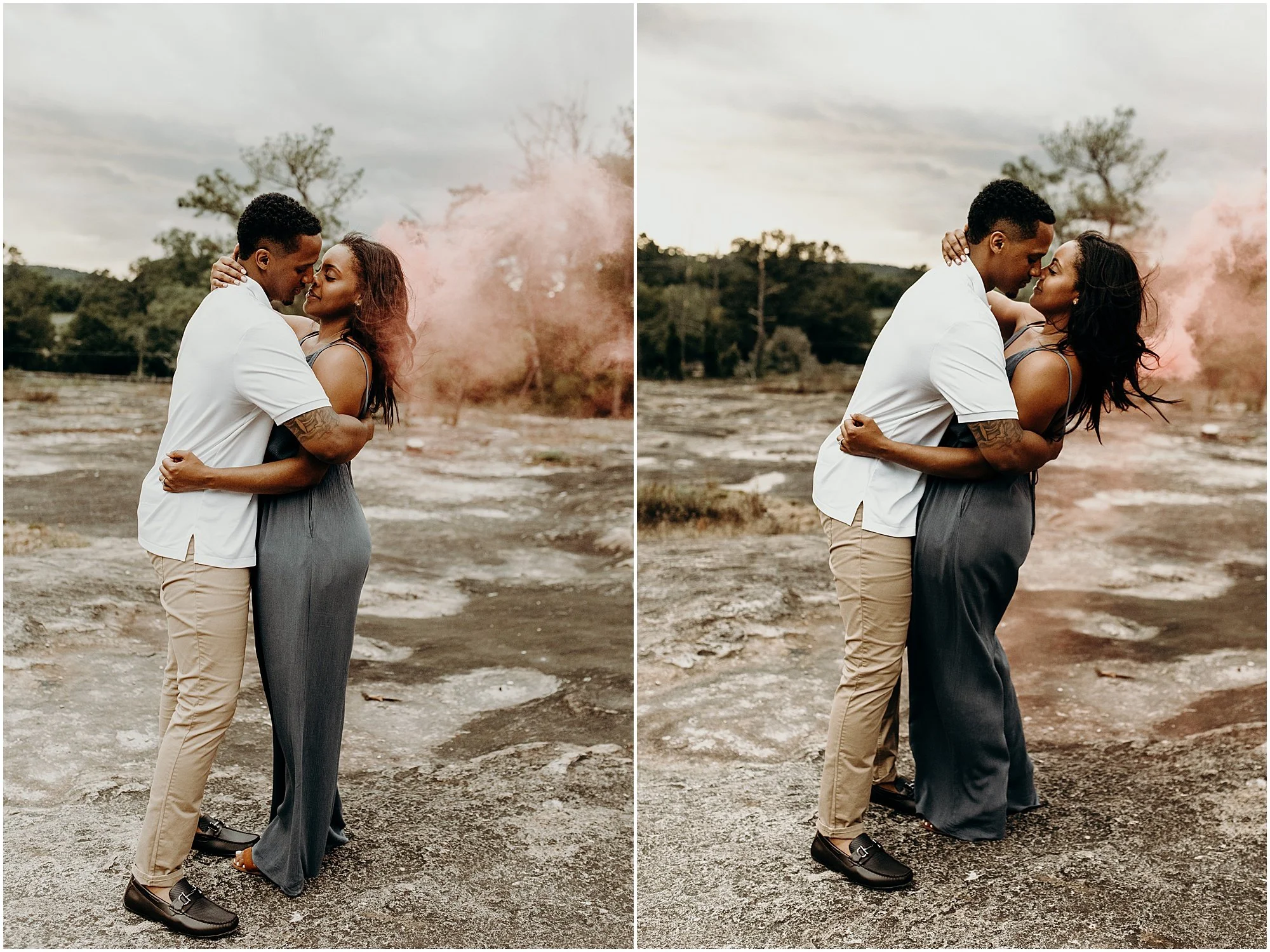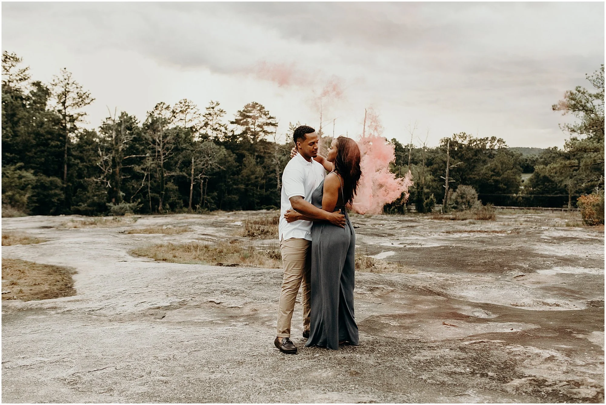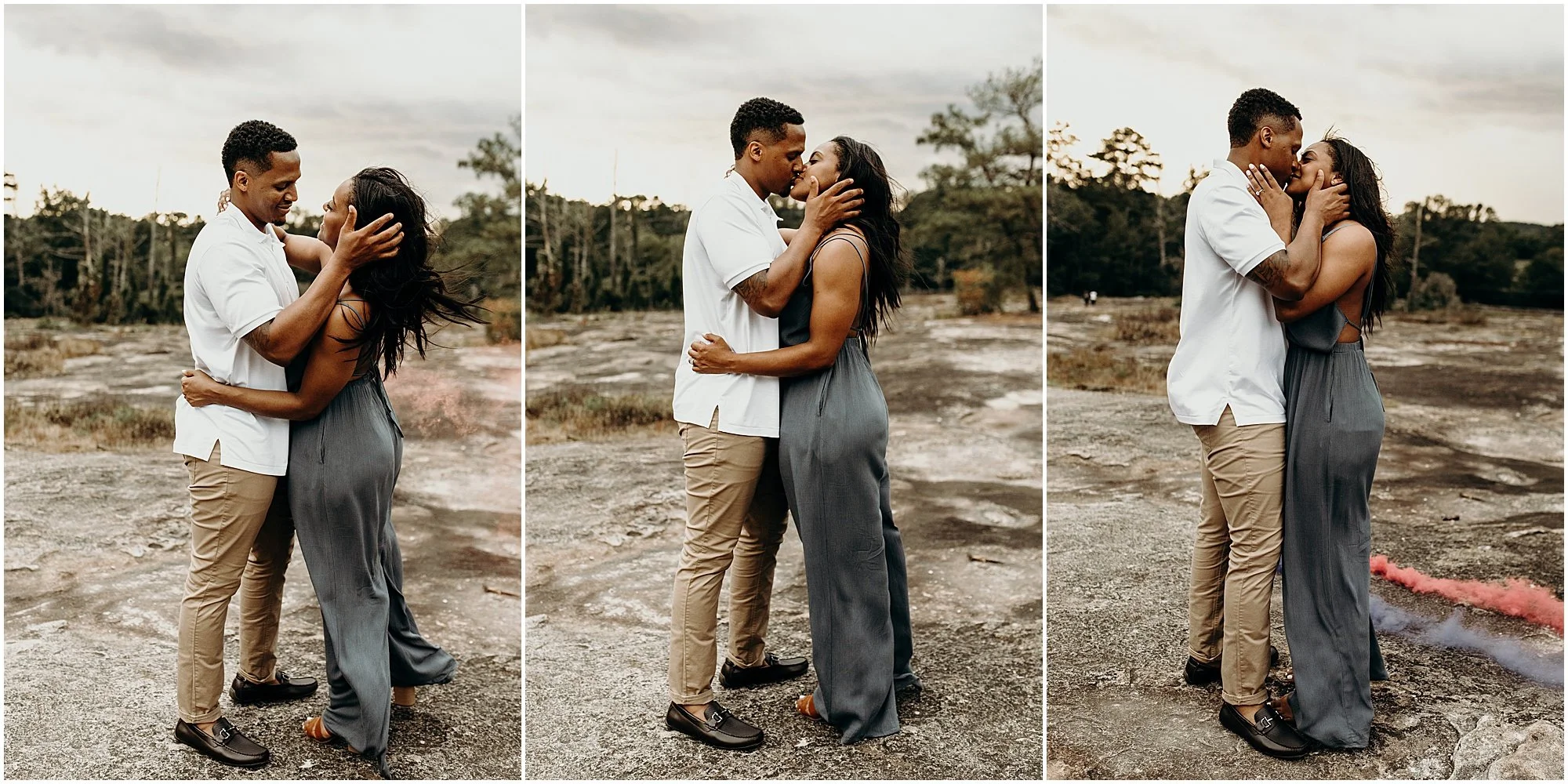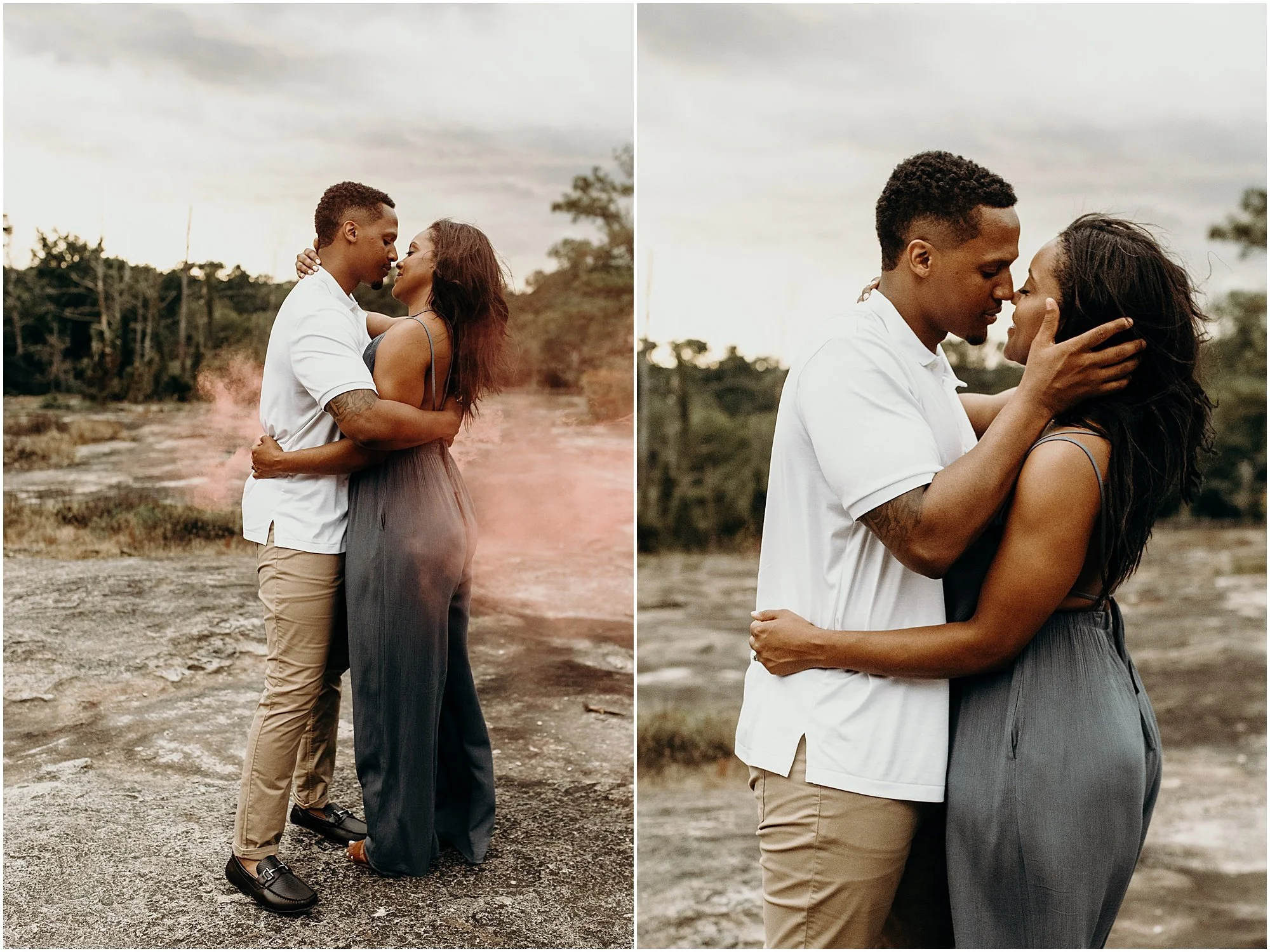 I’ve known Chris for a while and we actually used to work together! And so when he asked me to speak with his fiance, Andrea about their engagement photos I was super excited!! Andrea and I met up in Roswell at a coffee shop and discussed all about their destination wedding…. They’re getting married in Turks & Caicos this December!! I was soo excited for them! I shared with them my story and got to know their story a bit better. We scheduled the engagement photoshoot and waited for the day to come in March. The day came and we had to reschedule due to some calendar issues, so we rescheduled for some time in April; when that they came it was raininggggg!! Oh nooo a photographer’s nightmare! So we rescheduled again for two months out, in June…. Then as that weekend approched I checked the weather and it looked like — you guessed it — RAIN!!! I could cry!! We decided to go through with it anyways and hope for the best!! As it tuned out the rain held out until the very end of our shoot we were literally in front of our cars hugging goodbye and it started to POUR!! But i’m so thankful we were brave enough to go through with it despite the weather and end up with some amazing photos!!