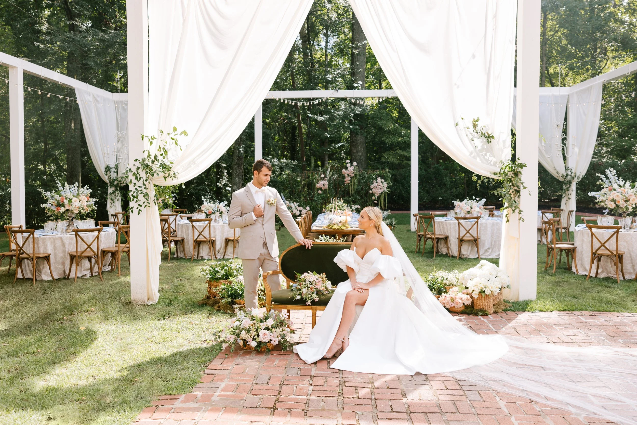 As we reminisce about the weddings celebrated in the past year, The Wheeler House emerges as a standout choice, embodying timeless elegance and picturesque charm. It has been the canvas upon which we’ve painted the cherished moments of our couples’ journey into marriage. The venue’s ability to seamlessly blend history with rustic allure creates an atmosphere that not only celebrates love but also enhances the romance that permeates the air. This stellar outdoor reception set up showcases the incredible potential at this venue in creating an intimate and romantic environment where all guests can feel the love and have enough room to greet, chat and dance under the stars.