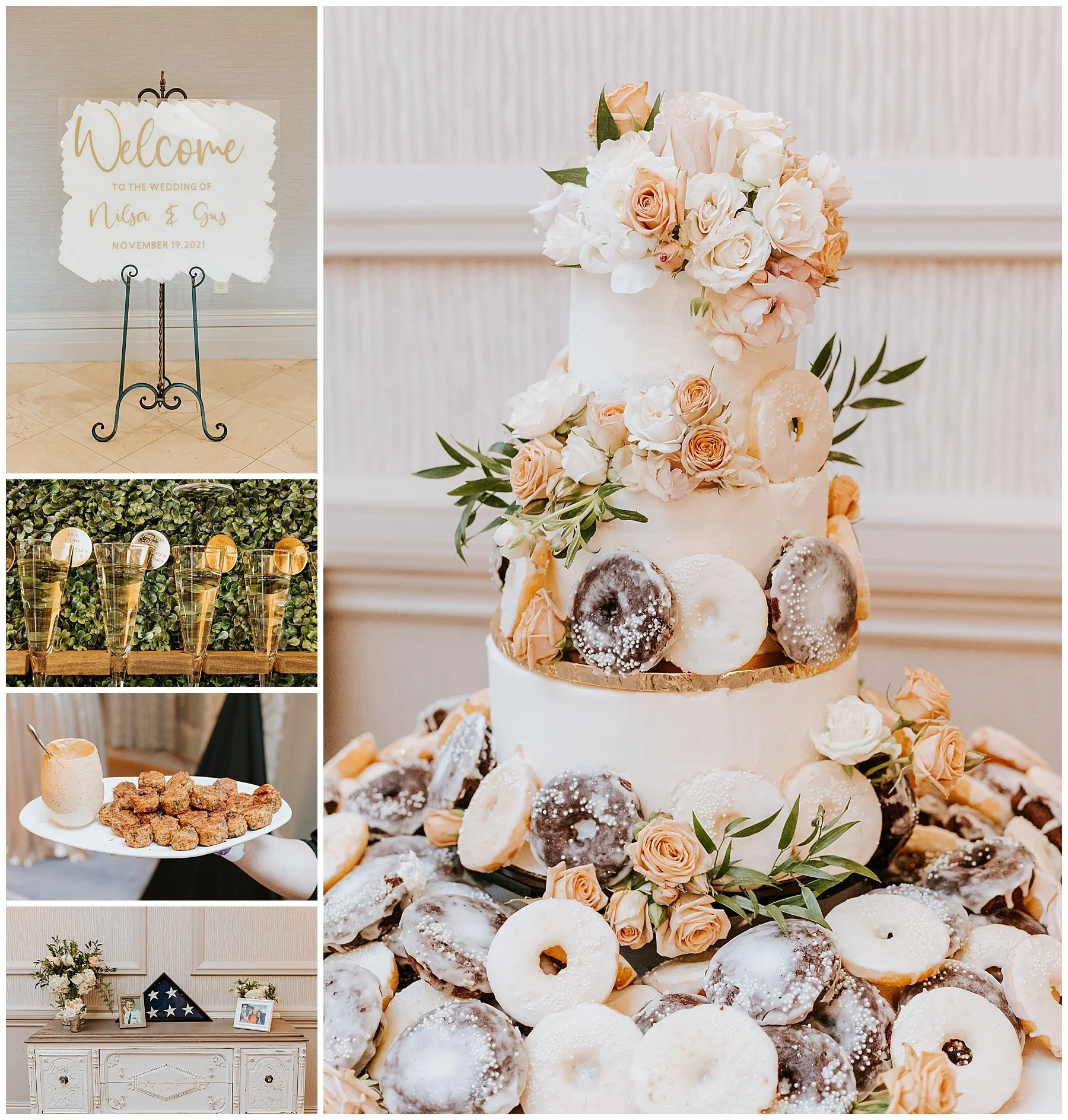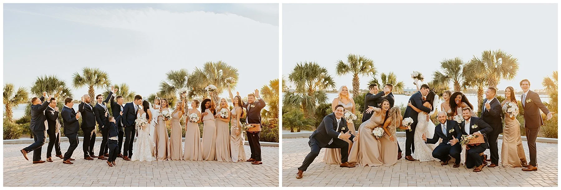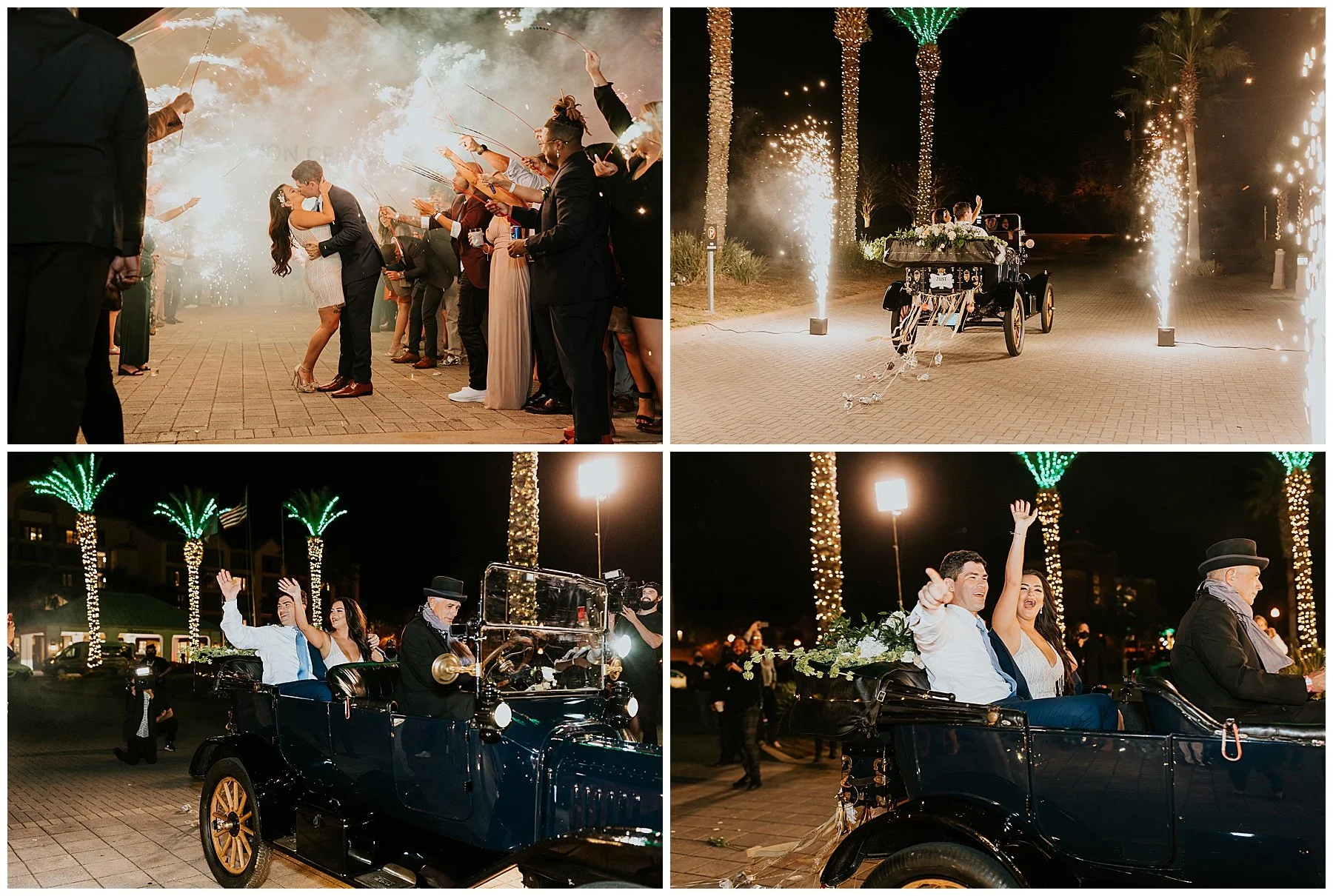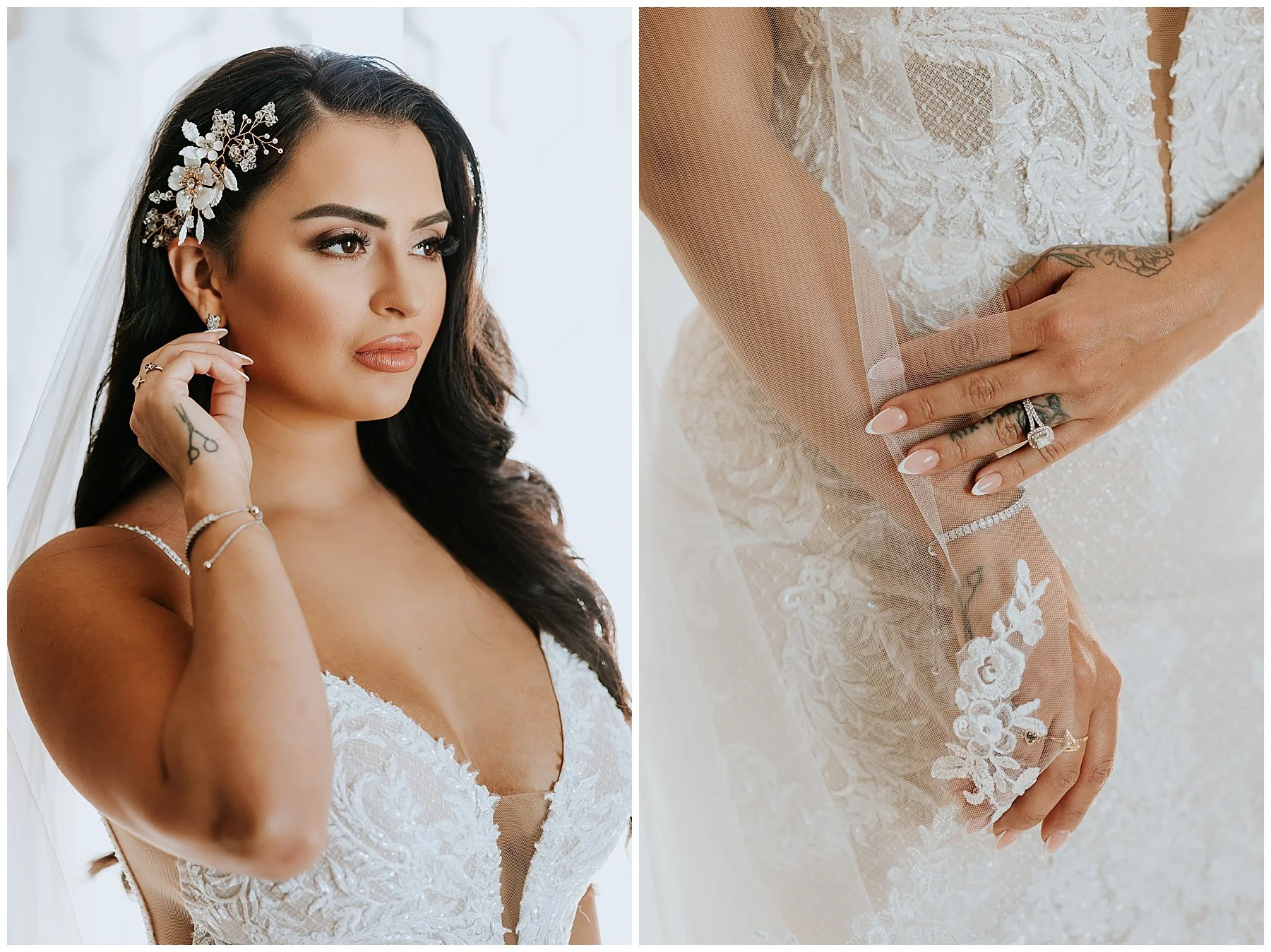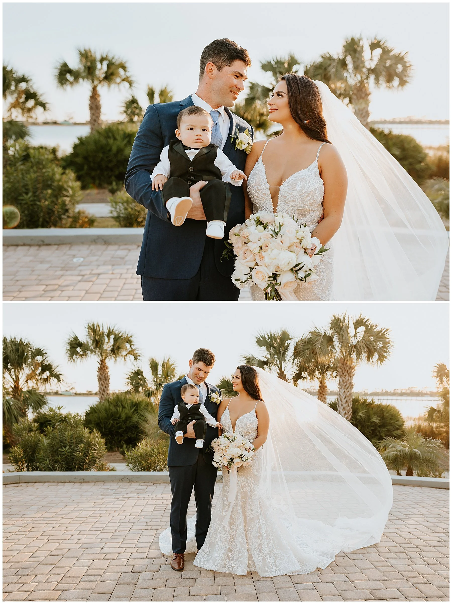 Nilsa chose us a couple of month’s before the wedding date to be her photographers and we were ecstactic. We worked closely with Miss Milly’s to create the best wedding day photo timeline for the bridal party and the couple. As wedding photographer’s we always want to be in close contact with the planner/coordinator in order to be in the know of all the events that need to be captured on the wedding day, and give our input on better location, time and lighting situations in order to achieve the best photographic results for the couple and all the vendors involved. Once the wedding day came around Miss Milly’s and the rest of their team worked tirelessly to create the beautiful wedding decor and floral arrangements for Nilsa’s wedding day! They initiated with Nilsa’s vision of transforming the ballroom into an ethereal garden and they achieved this through a draped aisle entrance, aisle floor gardens, and this arched floral arbor inspired by champagne! Nilsa chose one of our roommates on MTV’s Floribama Shore Codi Butts, to be her ‘beer guy’ instead of having a traditional ‘flower girl’. She also paid tribute to her father by carrying his flag down the aisle and saving him a seat on the front row. They said their ‘i do’s’ and on to the party which was LIT! Nilsa and Gus had DJ Yemi getting everybody to the dance floor and celebrating together! The couple’s send off was a sparkler’s send off on to a carriage and exited like royalty into their best life together!