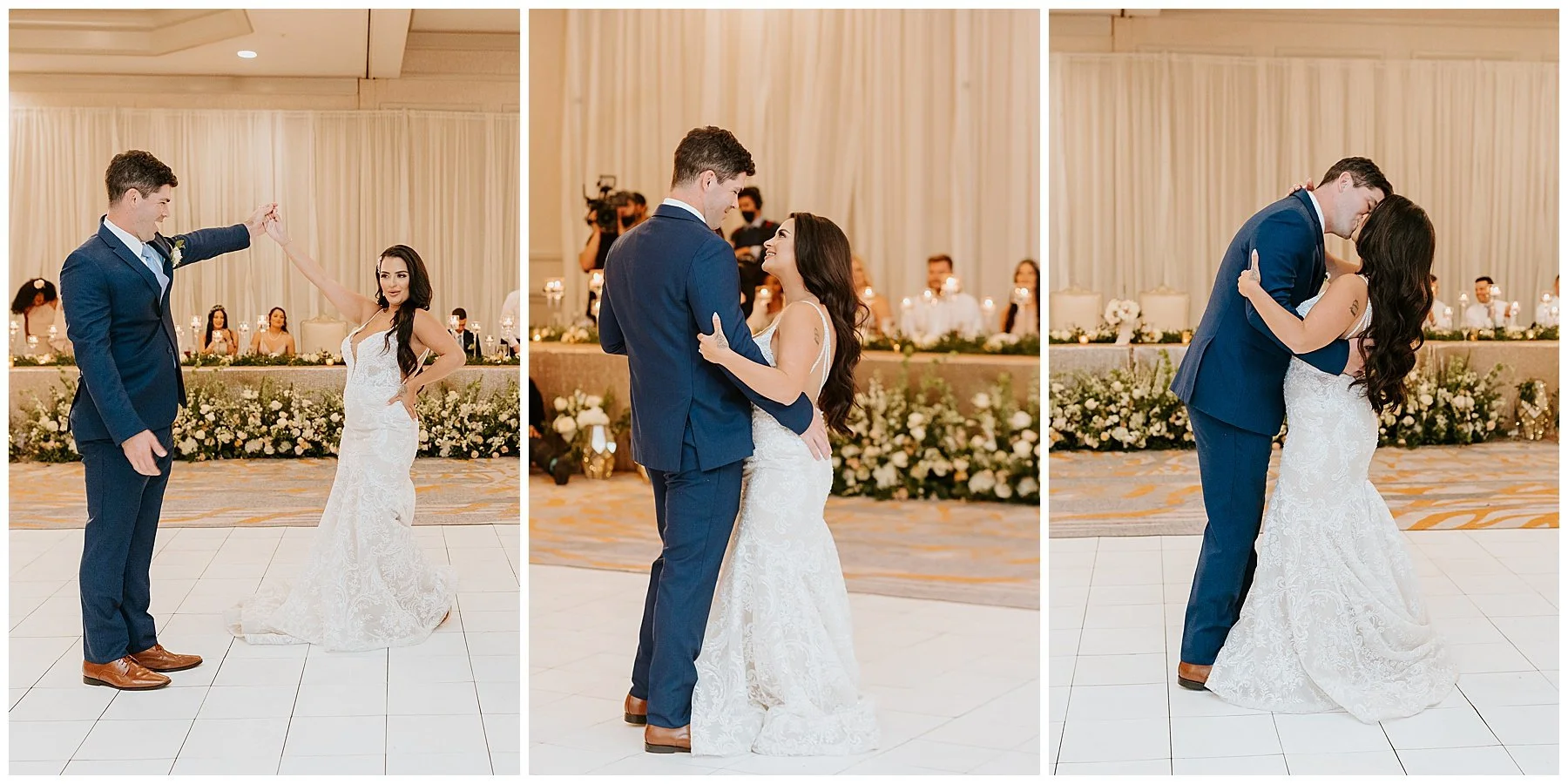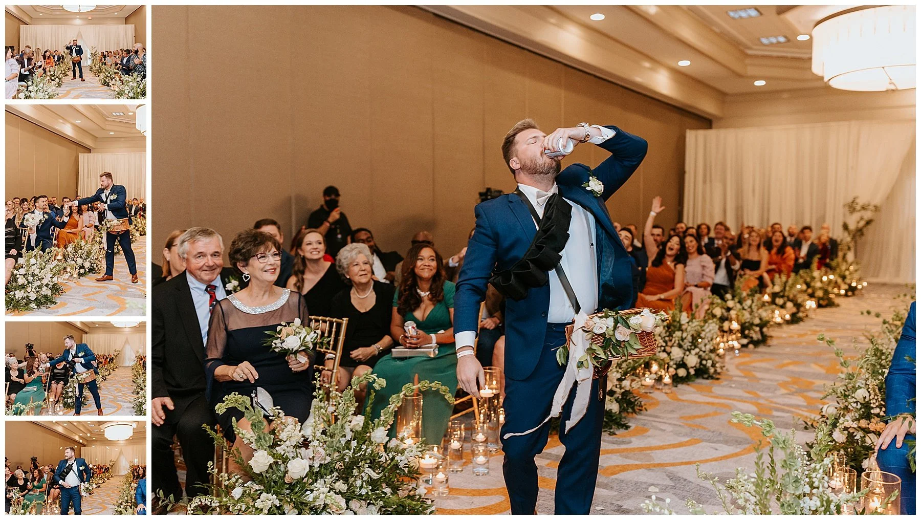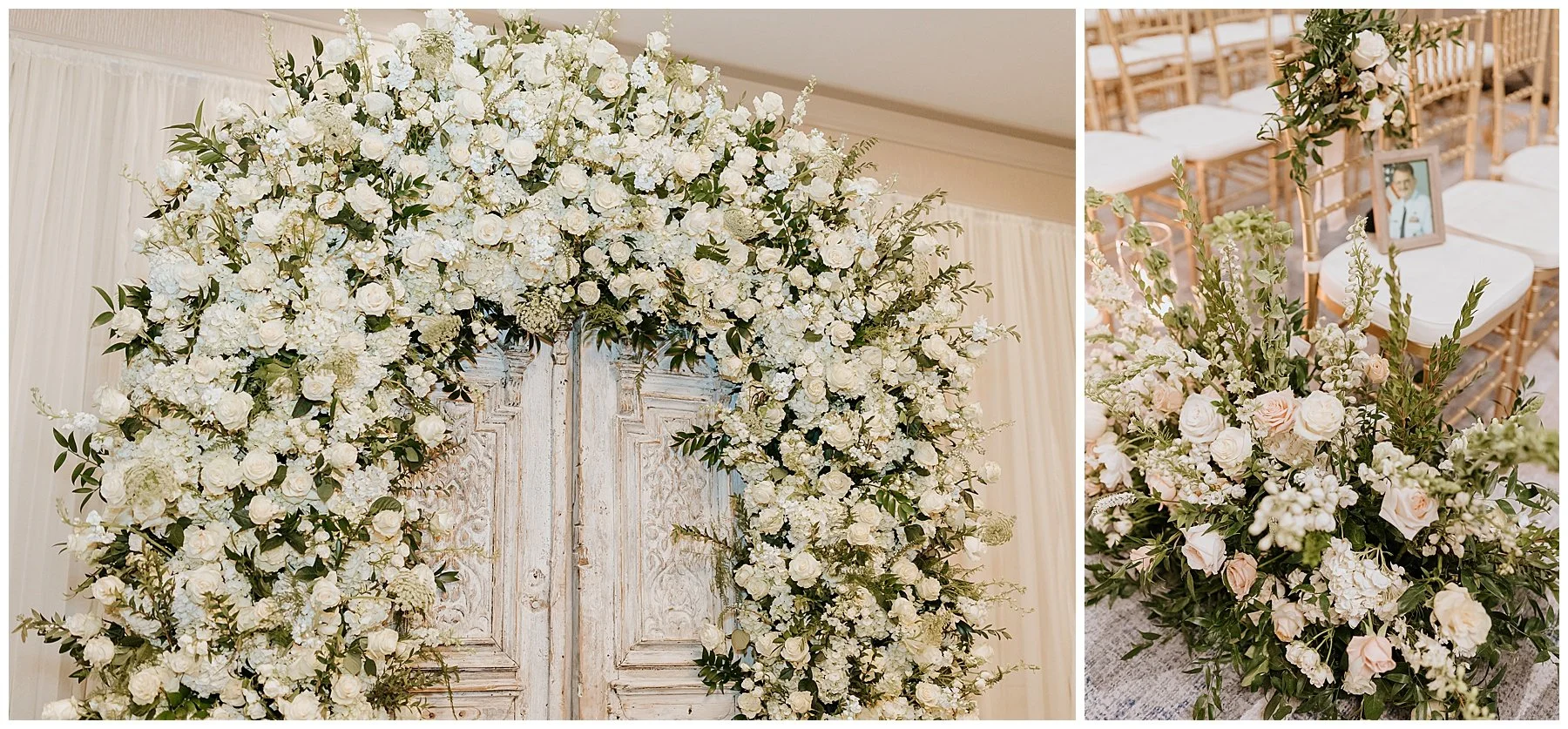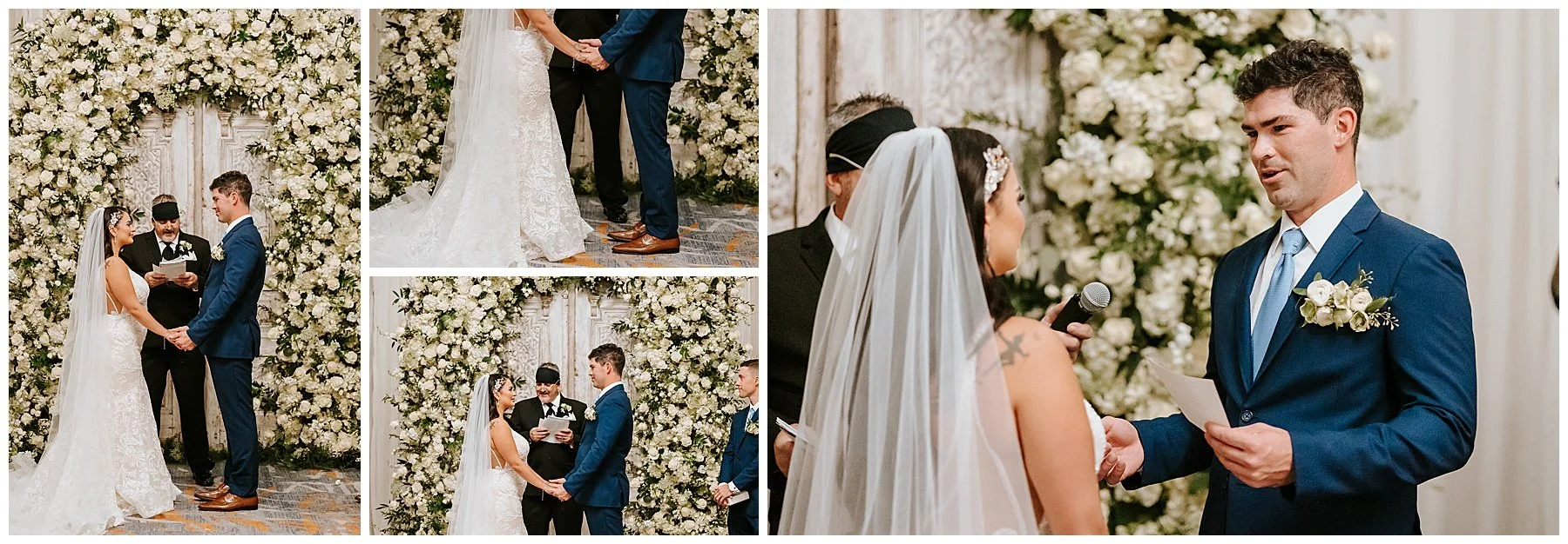 Nilsa chose us a couple of month’s before the wedding date to be her photographers and we were ecstactic. We worked closely with Miss Milly’s to create the best wedding day photo timeline for the bridal party and the couple. As wedding photographer’s we always want to be in close contact with the planner/coordinator in order to be in the know of all the events that need to be captured on the wedding day, and give our input on better location, time and lighting situations in order to achieve the best photographic results for the couple and all the vendors involved. Once the wedding day came around Miss Milly’s and the rest of their team worked tirelessly to create the beautiful wedding decor and floral arrangements for Nilsa’s wedding day! They initiated with Nilsa’s vision of transforming the ballroom into an ethereal garden and they achieved this through a draped aisle entrance, aisle floor gardens, and this arched floral arbor inspired by champagne! Nilsa chose one of our roommates on MTV’s Floribama Shore Codi Butts, to be her ‘beer guy’ instead of having a traditional ‘flower girl’. She also paid tribute to her father by carrying his flag down the aisle and saving him a seat on the front row. They said their ‘i do’s’ and on to the party which was LIT! Nilsa and Gus had DJ Yemi getting everybody to the dance floor and celebrating together! The couple’s send off was a sparkler’s send off on to a carriage and exited like royalty into their best life together!